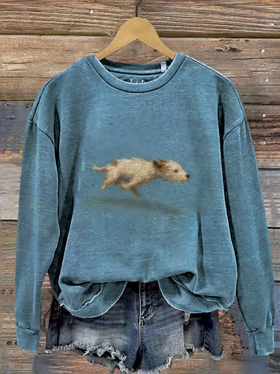 Funny Cute Running Dog Art Print Casual Sweatshirt