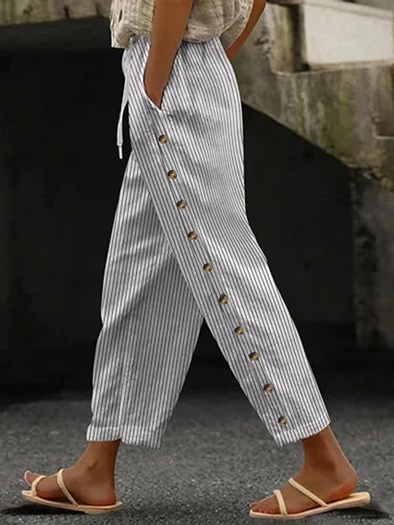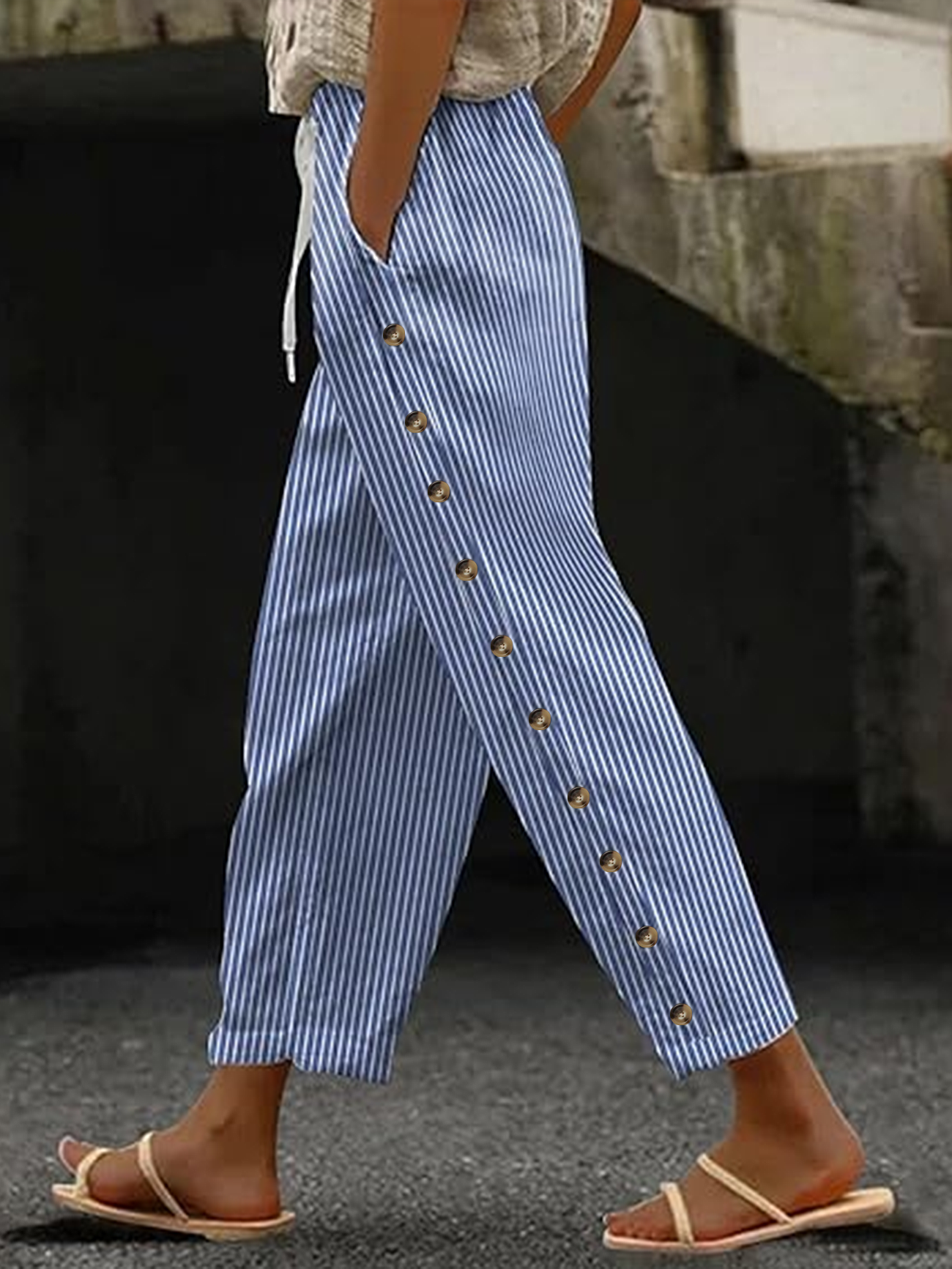 Women's H-Line Baggy Pants Daily Going Out Pants Blue Casual Buckle Striped Spring/Fall Pants