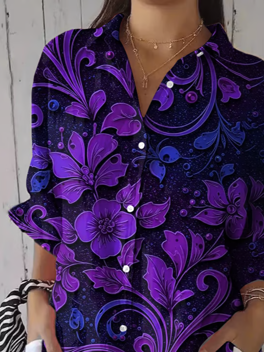 Women's Long Sleeve Shirt Spring/Fall As Picture Christmas Buckle Shirt Collar Regular Sleeve Daily Going Out Casual Top