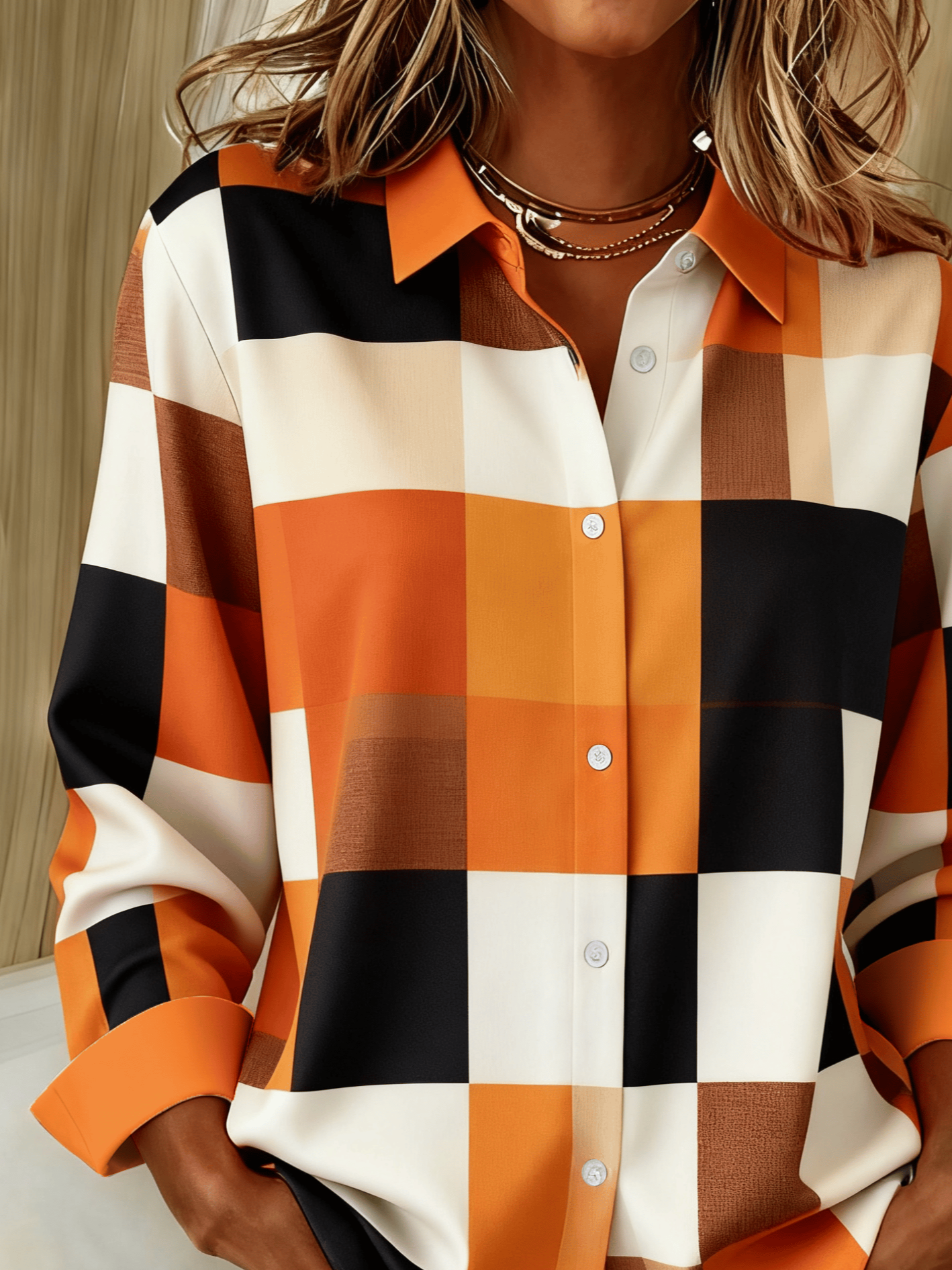 Women's Long Sleeve Shirt Spring/Fall Orange Abstract Buckle Shirt Collar Regular Sleeve Daily Going Out Casual Top