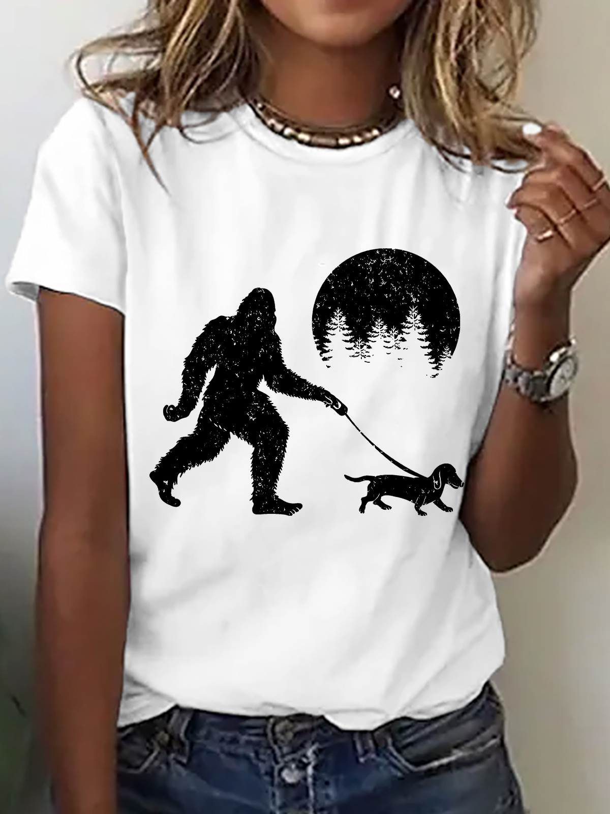 Bigfoot Walking Wiener Dog Cotton T-Shirtw