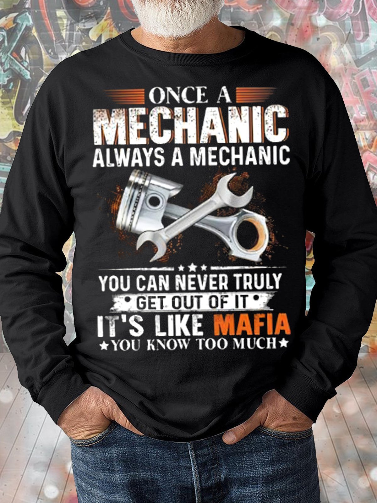Men's Once A Mechanic Always A Mechanic Youcan Never Truly Get Out Of It Funny Fix Graphic Print Crew Neck Text Letters Loose Casual Sweatshirt