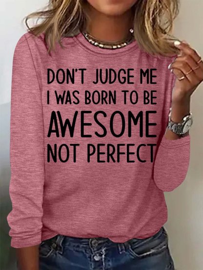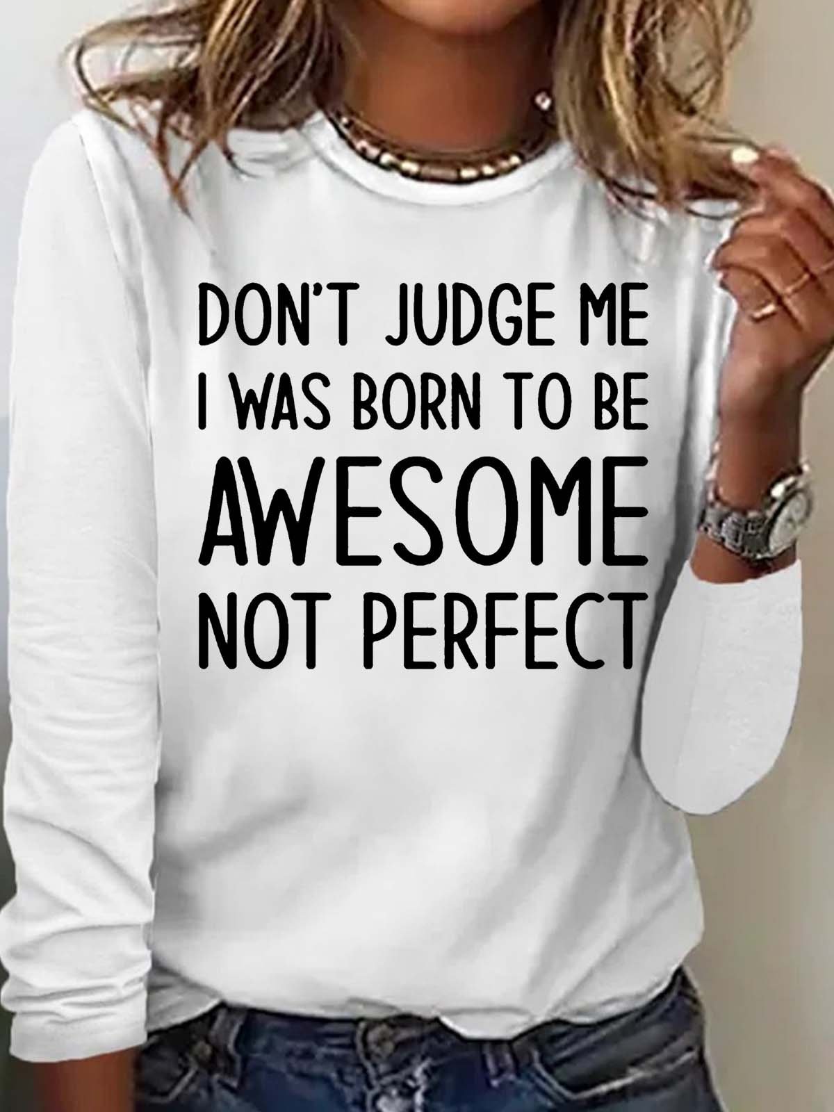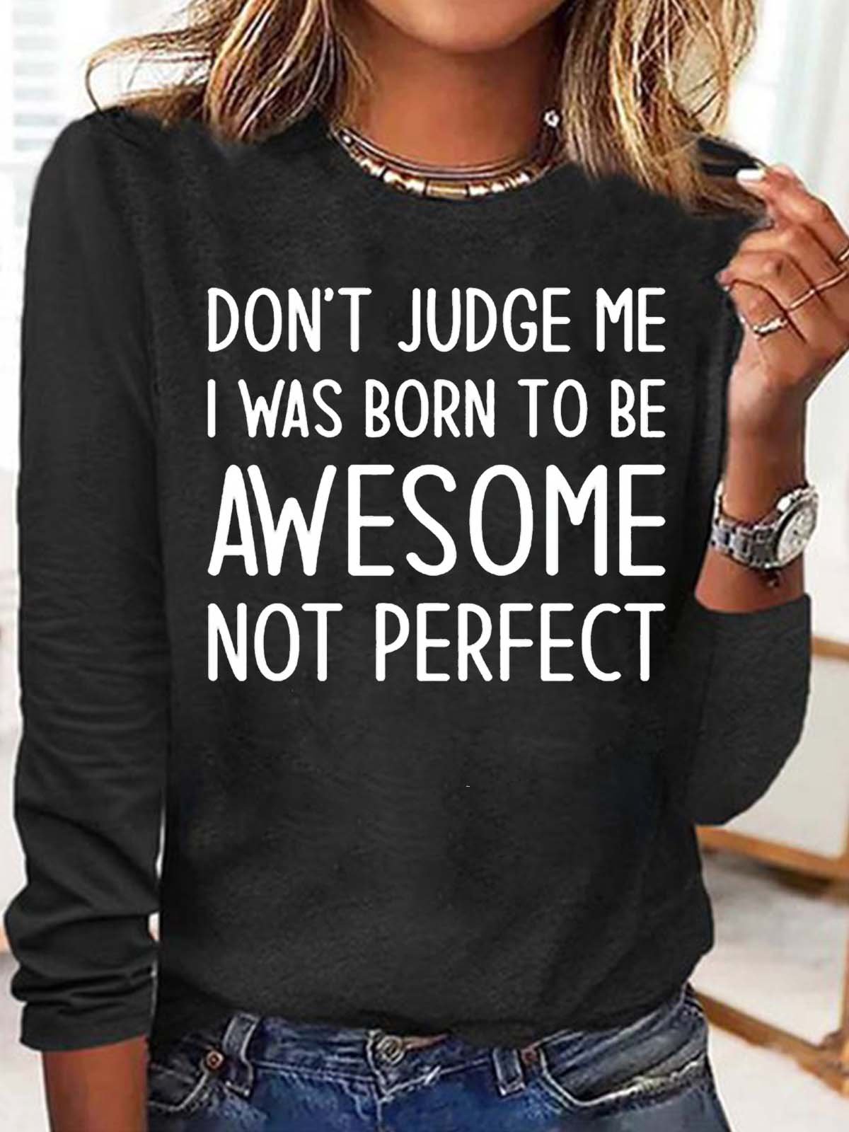 Women‘s Don't Judge Me I Was Born To Be Awesome Not Perfect Casual Crew Neck Top