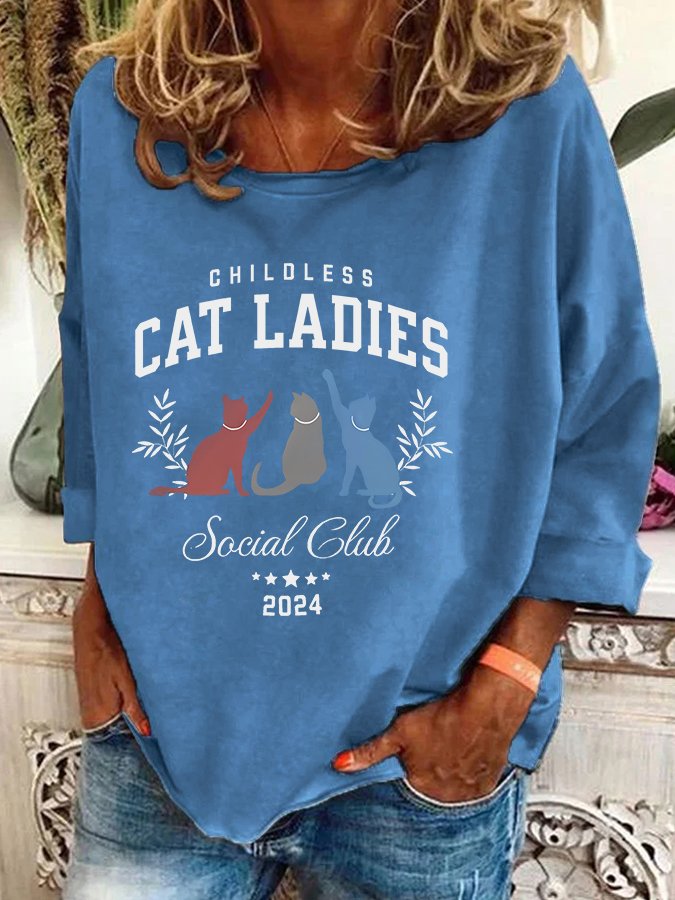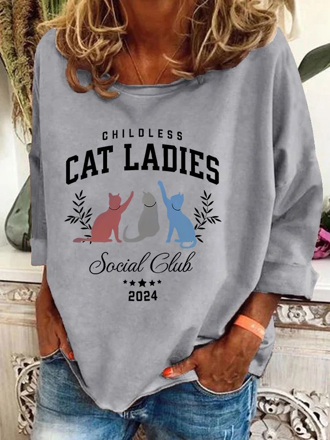 Childless Cat Lady Print Casual Sweatshirt