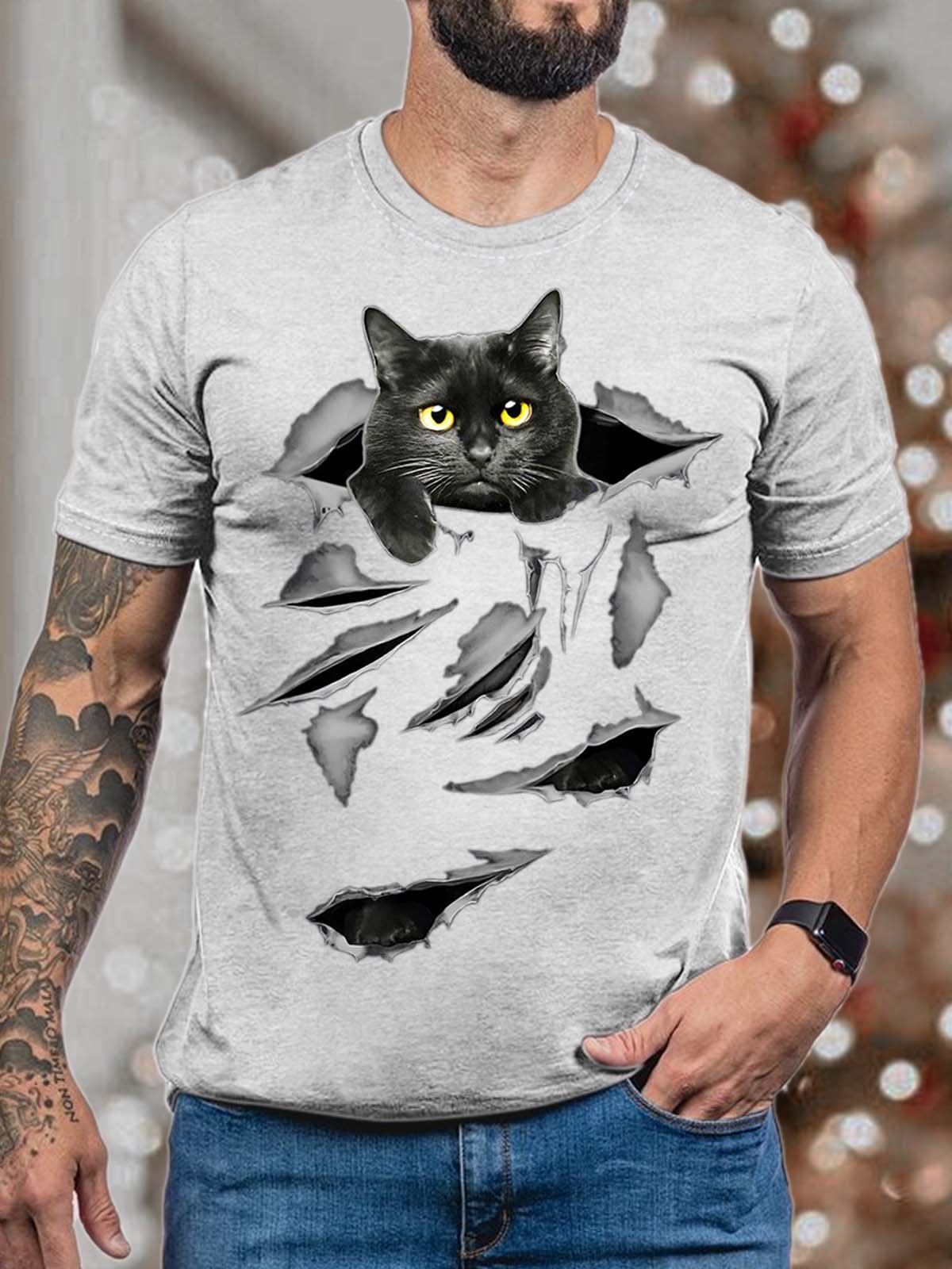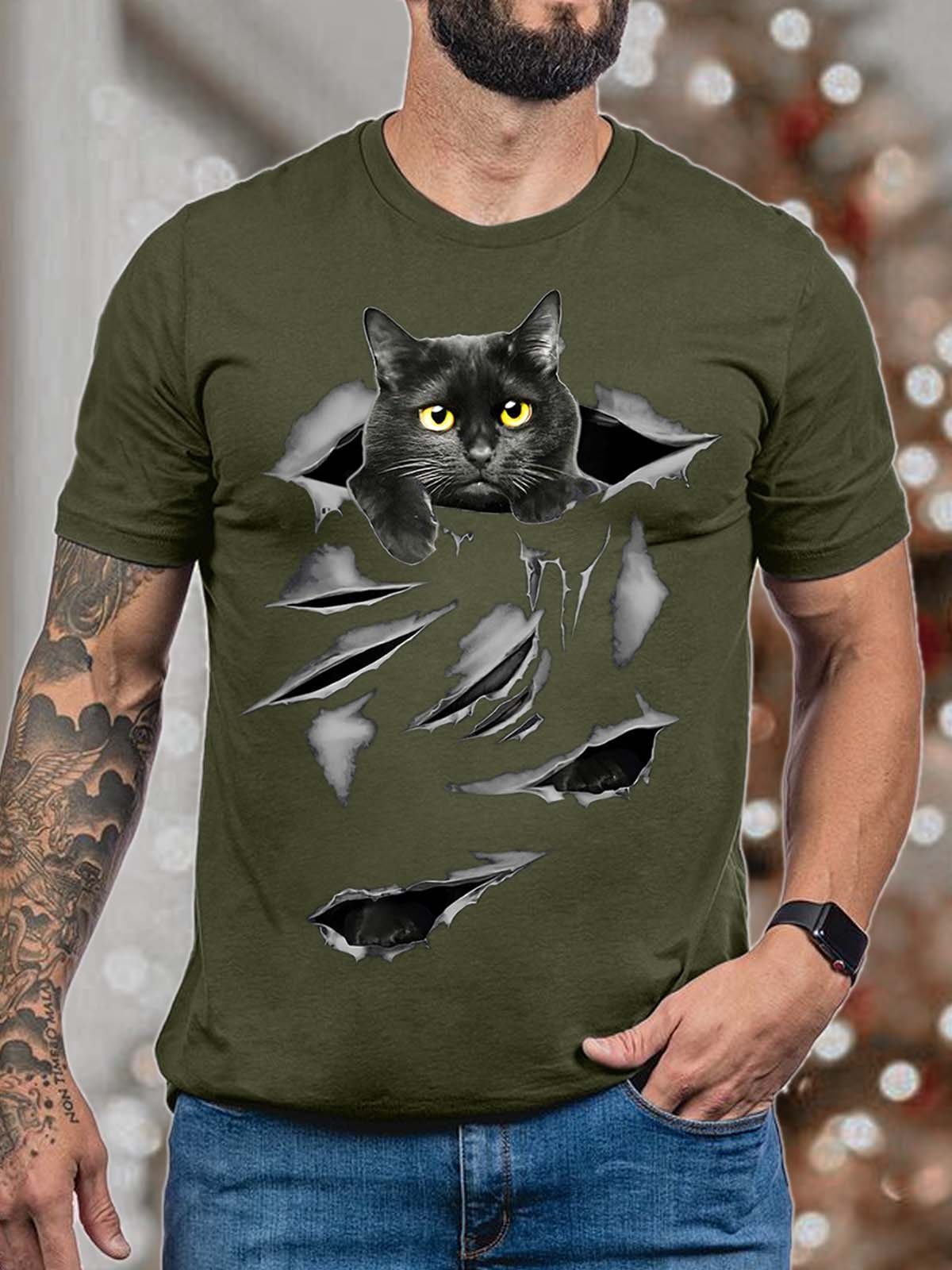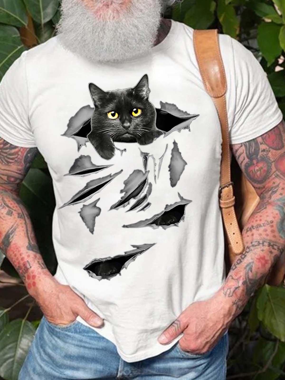 Men’s Black Cat Pattern Fit Casual Animal T-Shirt