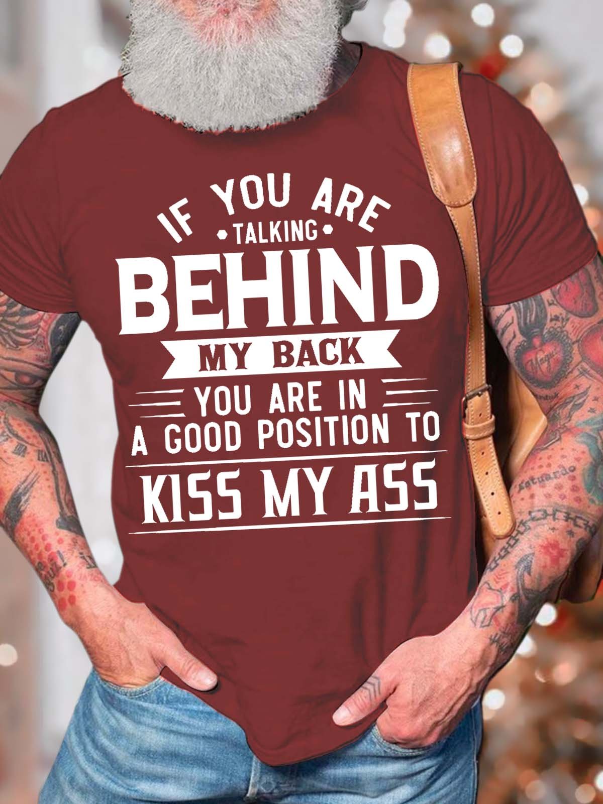 Men’s If You Are Talking Behind My Back You Are In a Good Position To Kiss My Ass Crew Neck Casual Cotton Text Letters T-Shirt