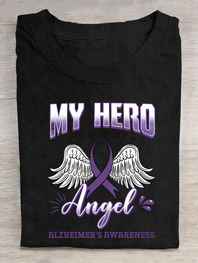 My Hero Is Now My Angel Alzheimer's Awareness Cotton T-Shirt