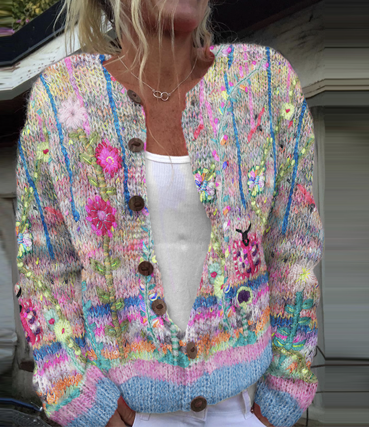 Vintage floral button knit cardigan
