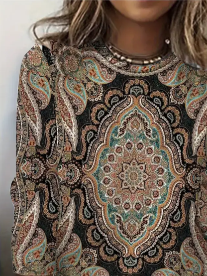 Women's Long Sleeve T-shirt Spring/Fall As Picture Ethnic Printing Jersey Crew Neck Daily Going Out Casual Top