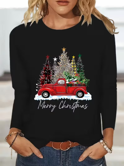 Women's Long Sleeve T-shirt Spring/Fall Black Christmas Printing Jersey Crew Neck Daily Going Out Casual Top