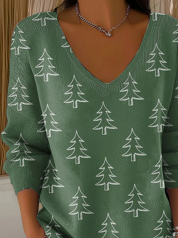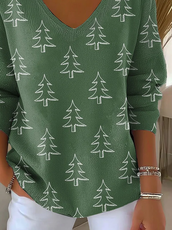 Women's Long Sleeve T-shirt Spring/Fall Green Christmas Printing V Neck Daily Going Out Casual Top