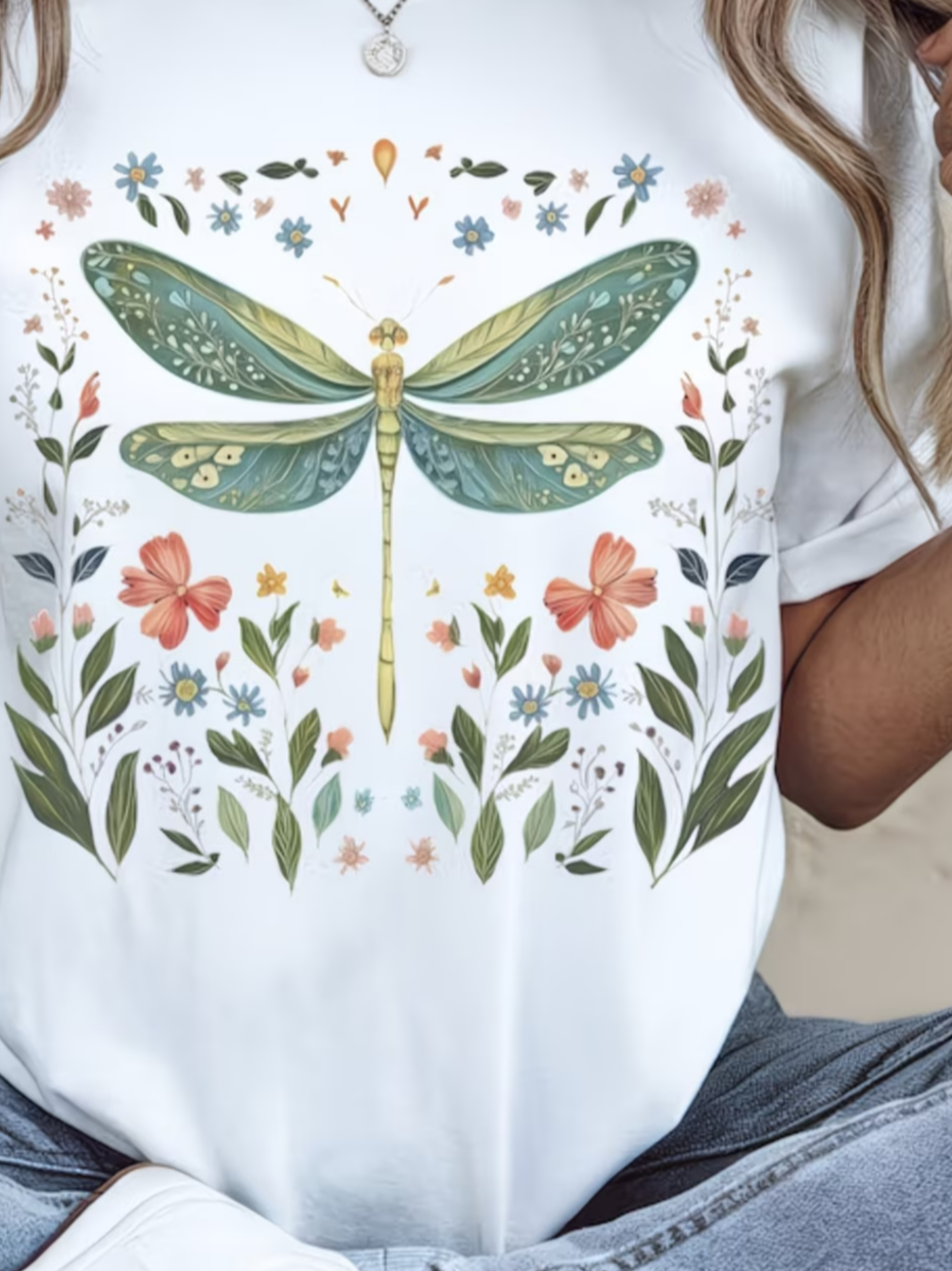 Women's Short Sleeve T-shirt Summer White Dragonfly Printing Jersey Crew Neck Daily Going Out Casual Top