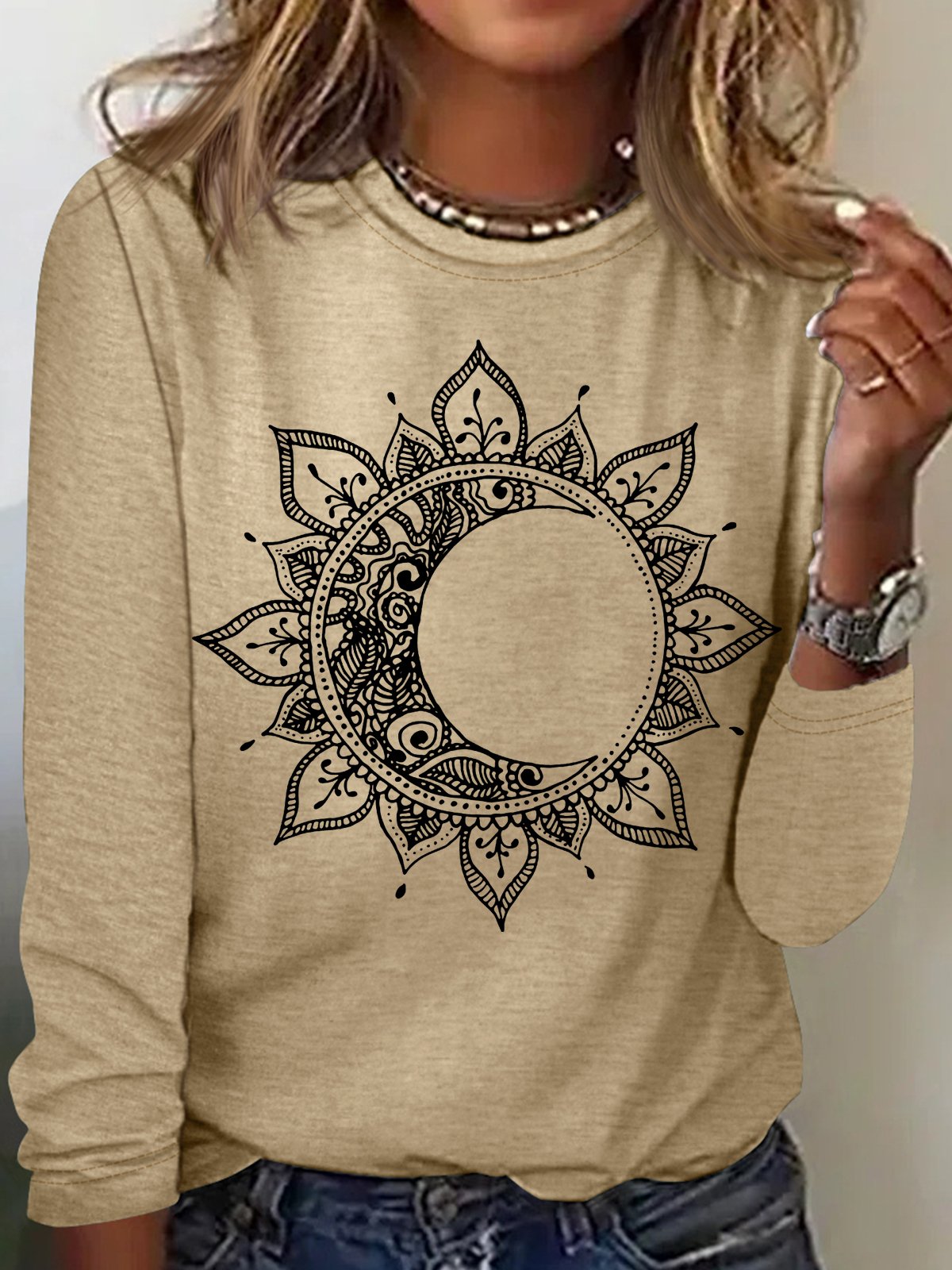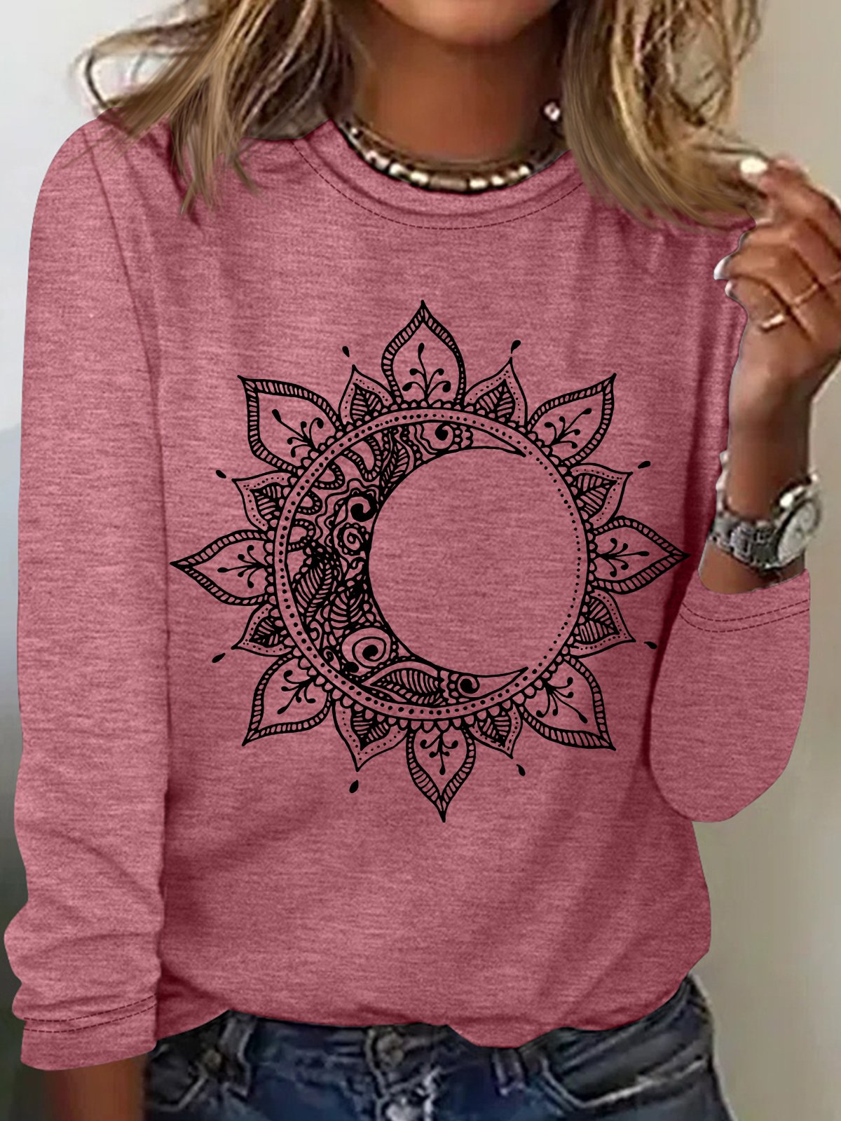 Women's Mandala Sun And Moon Crew Neck Casual Top