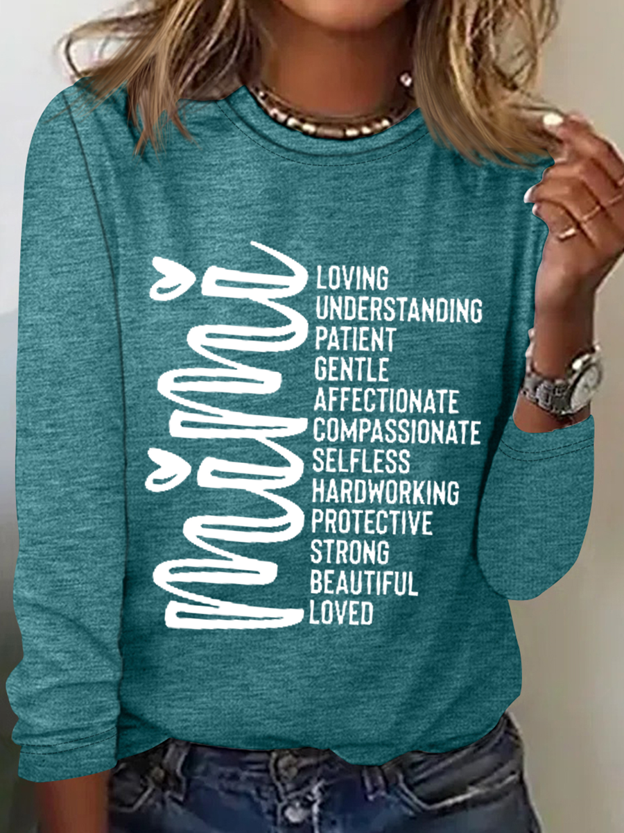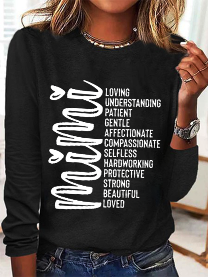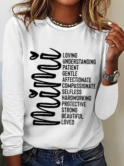 Women‘s Funny Mimi Noun Cotton-Blend Simple Crew Neck Text Letters Long Sleeve Top