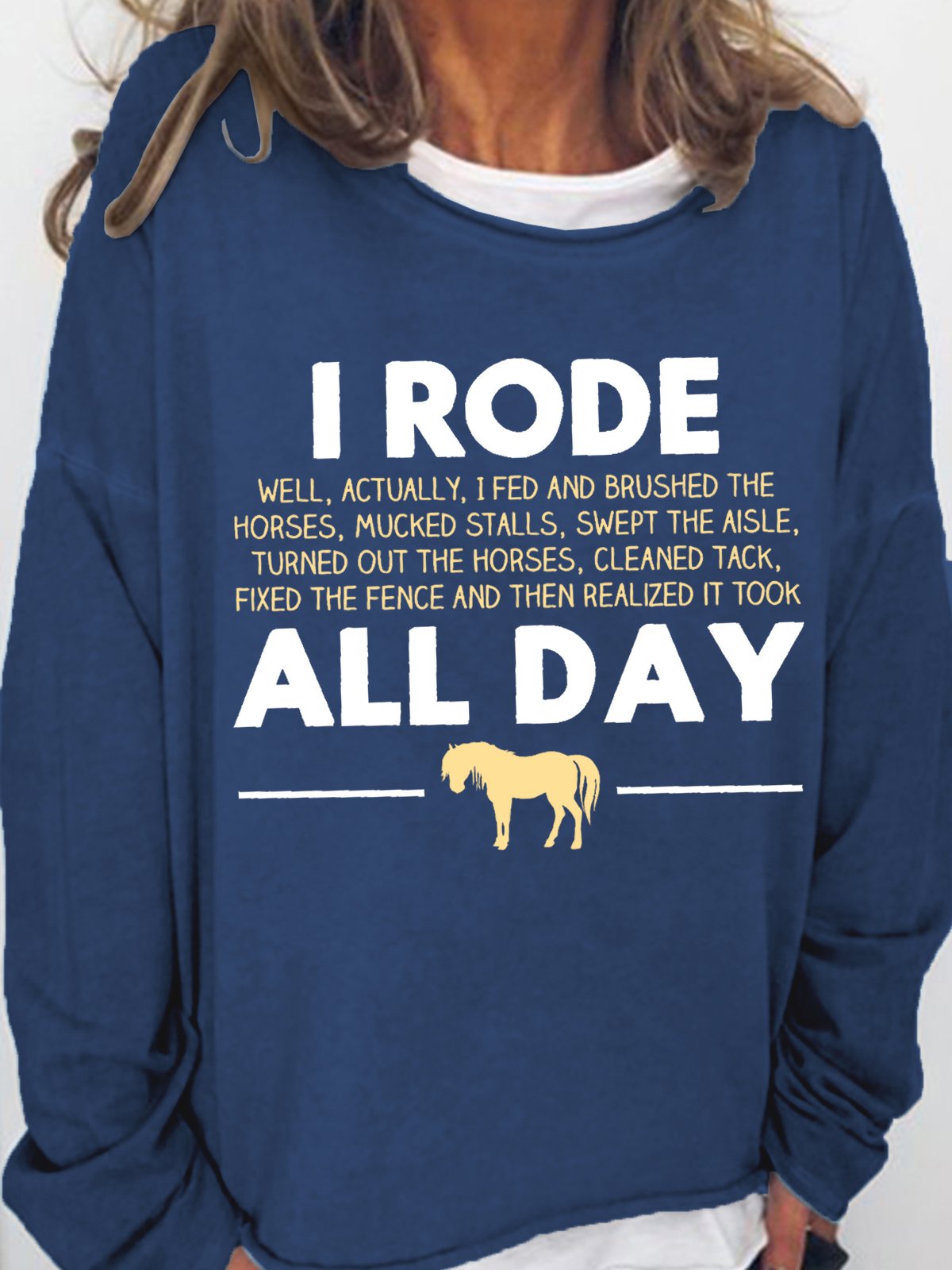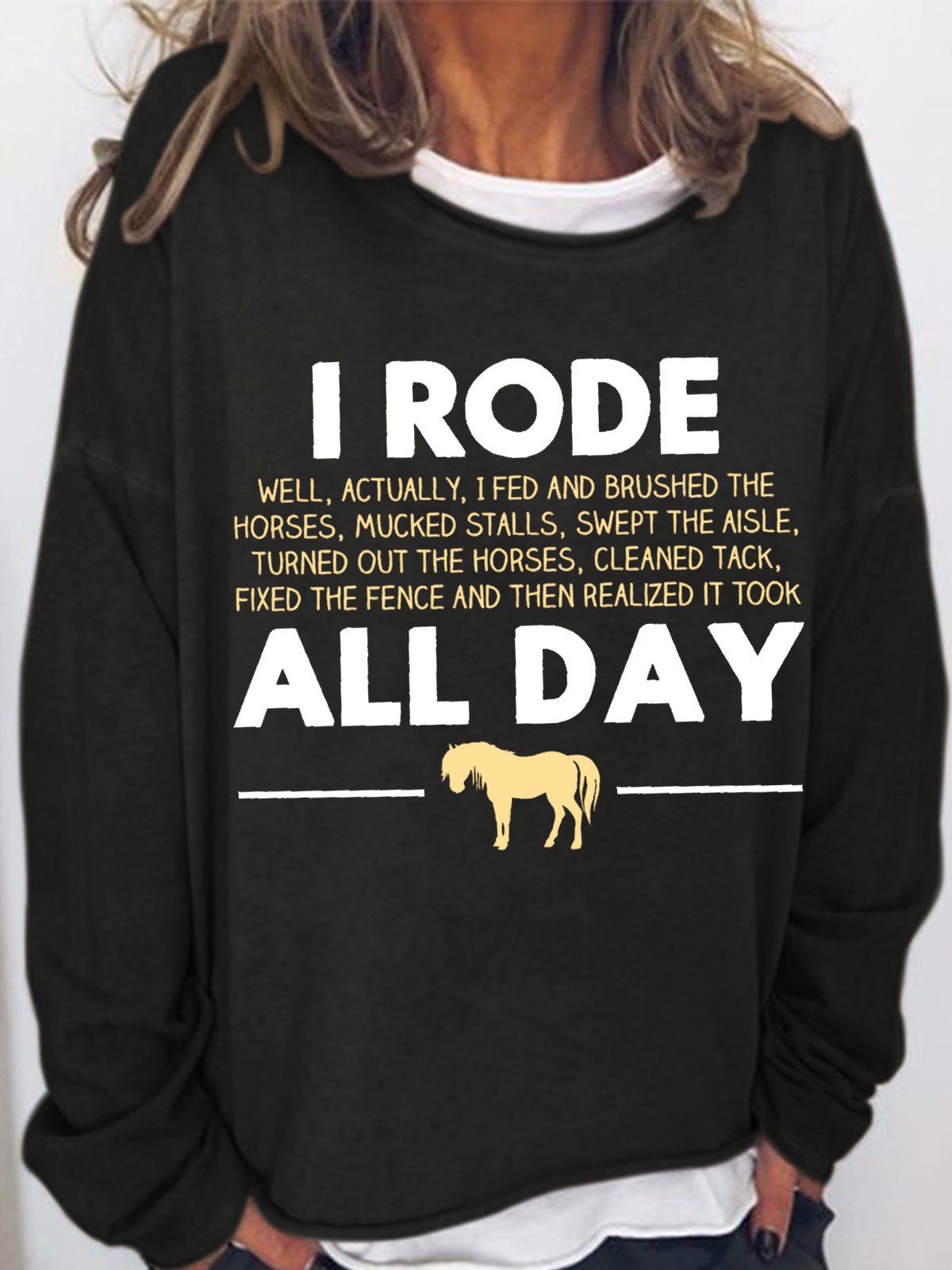 Women's Rode My Horse All Day Horse Lover Simple Animal Loose Sweatshirt
