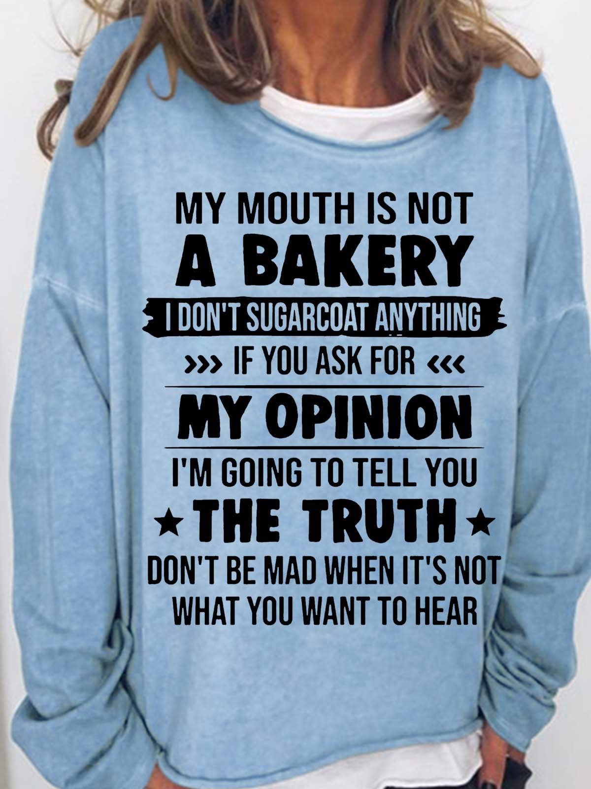 Women's Funny Letter My Mouth Is Not A Bakery Casual Sweatshirt