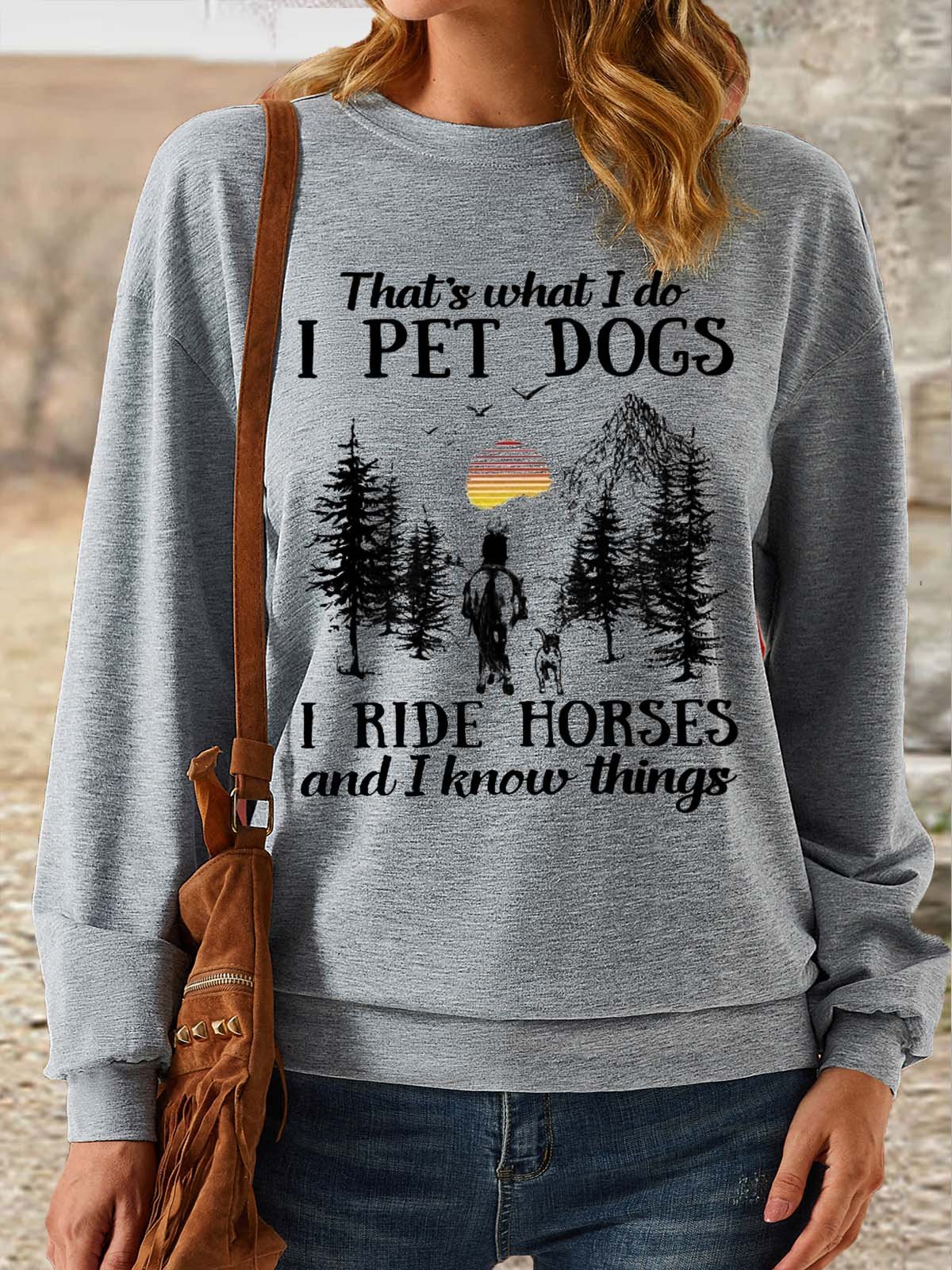 Women's That's What I Do I Pet Dogs I Ride Horses Horse Lover Casual Letters Sweatshirt