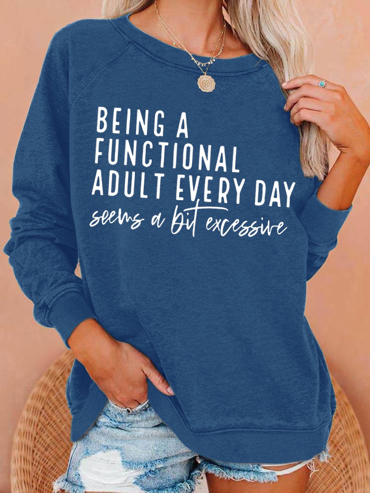 Women's Being A Functional Adult Every Day Seems A Bit Excessive Funny Graphic Printing Text Letters Casual Crew Neck Sweatshirt