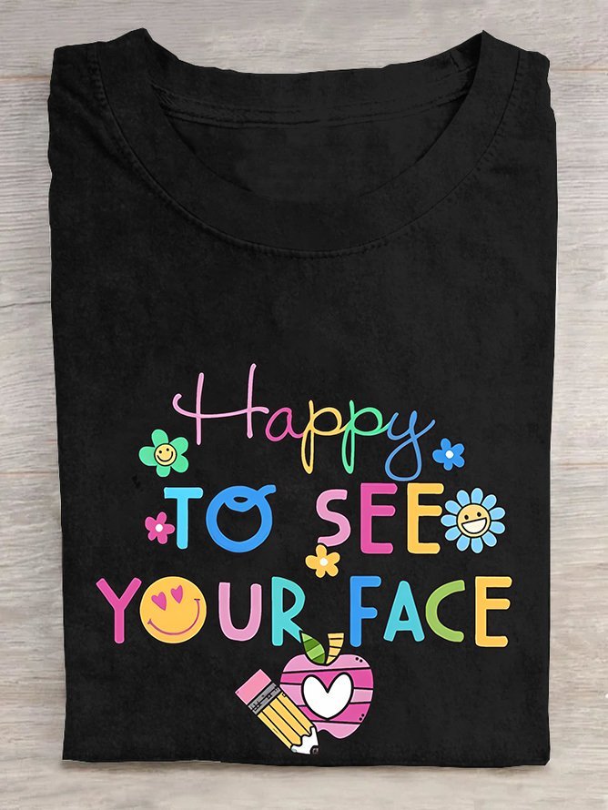Back To School Happy To See Your Face Cotton T-shirt