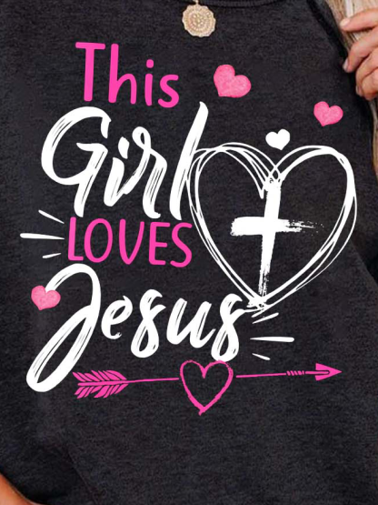 Women This Girl Loves Jesus Letters Casual Sweatshirt