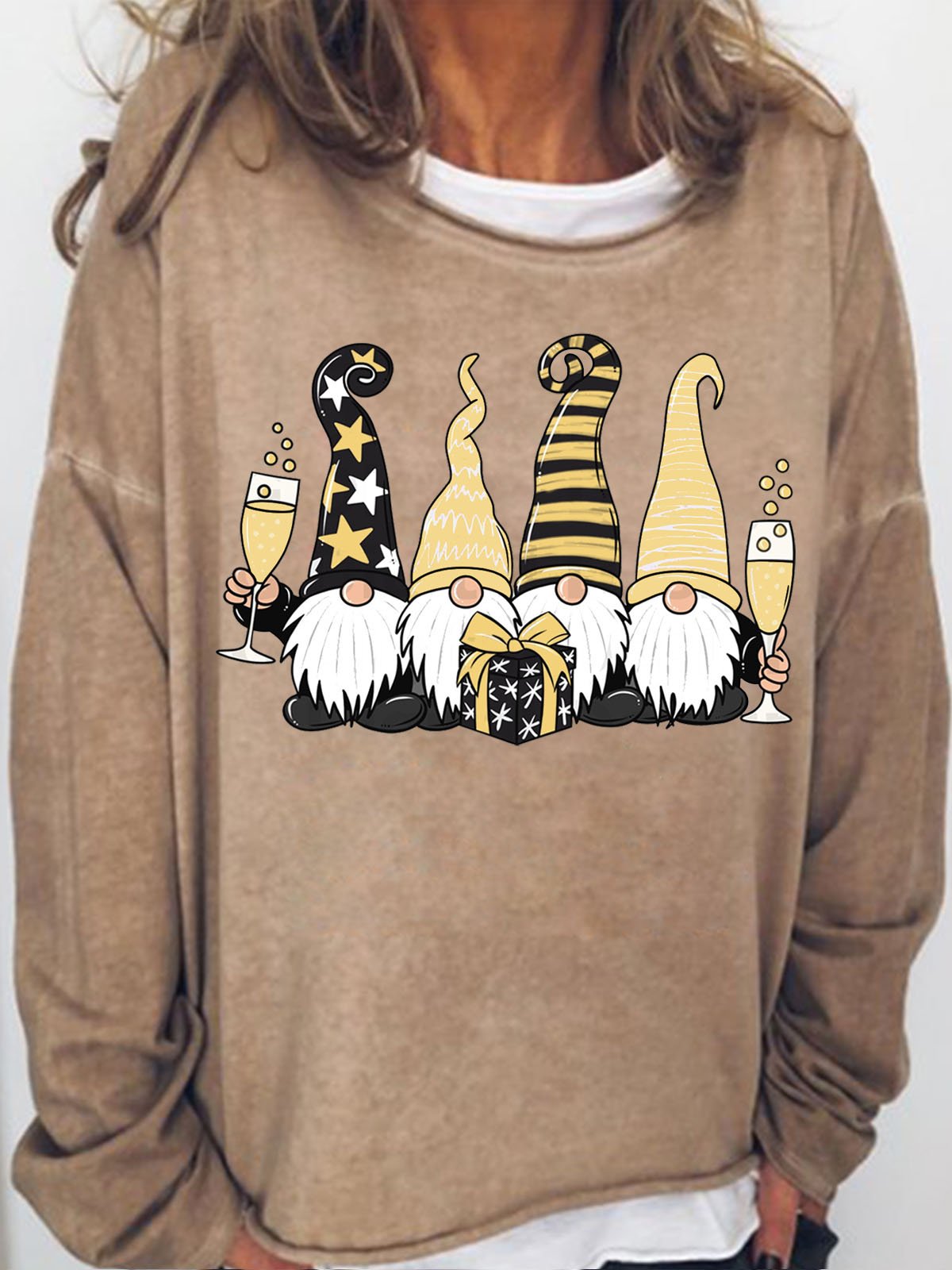 Women's New Year Gnomes Print Casual Sweatshirt