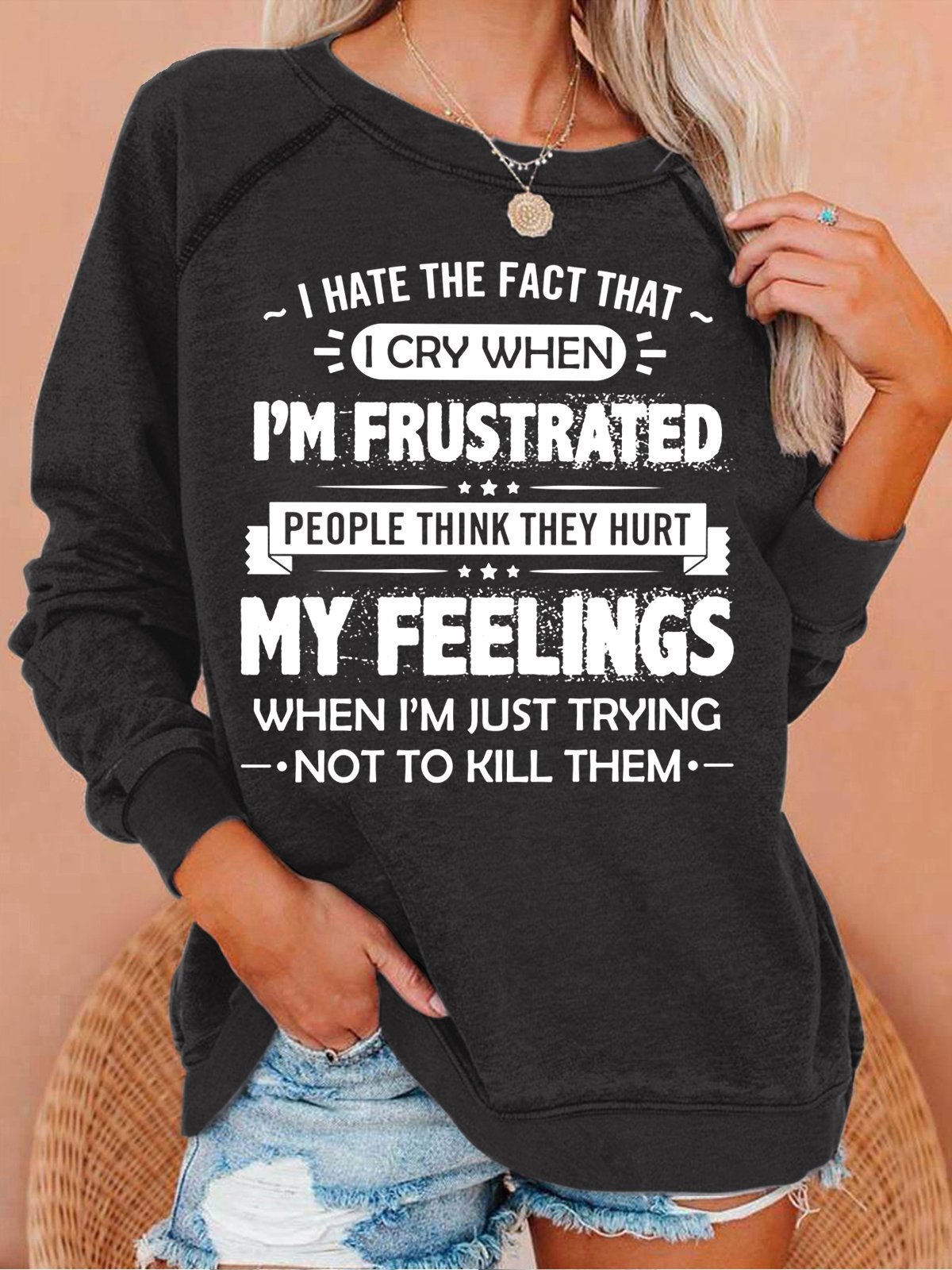 Women's I Hate The Fact That I Cry Casual Letters Sweatshirt