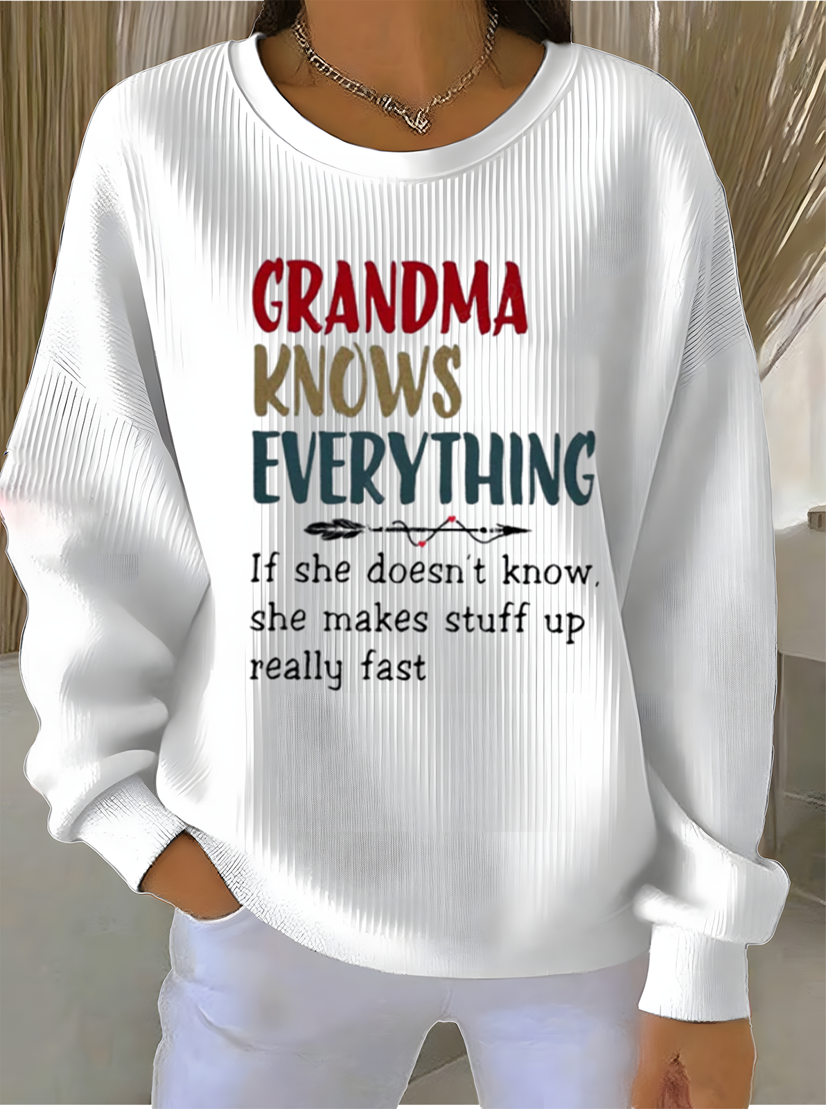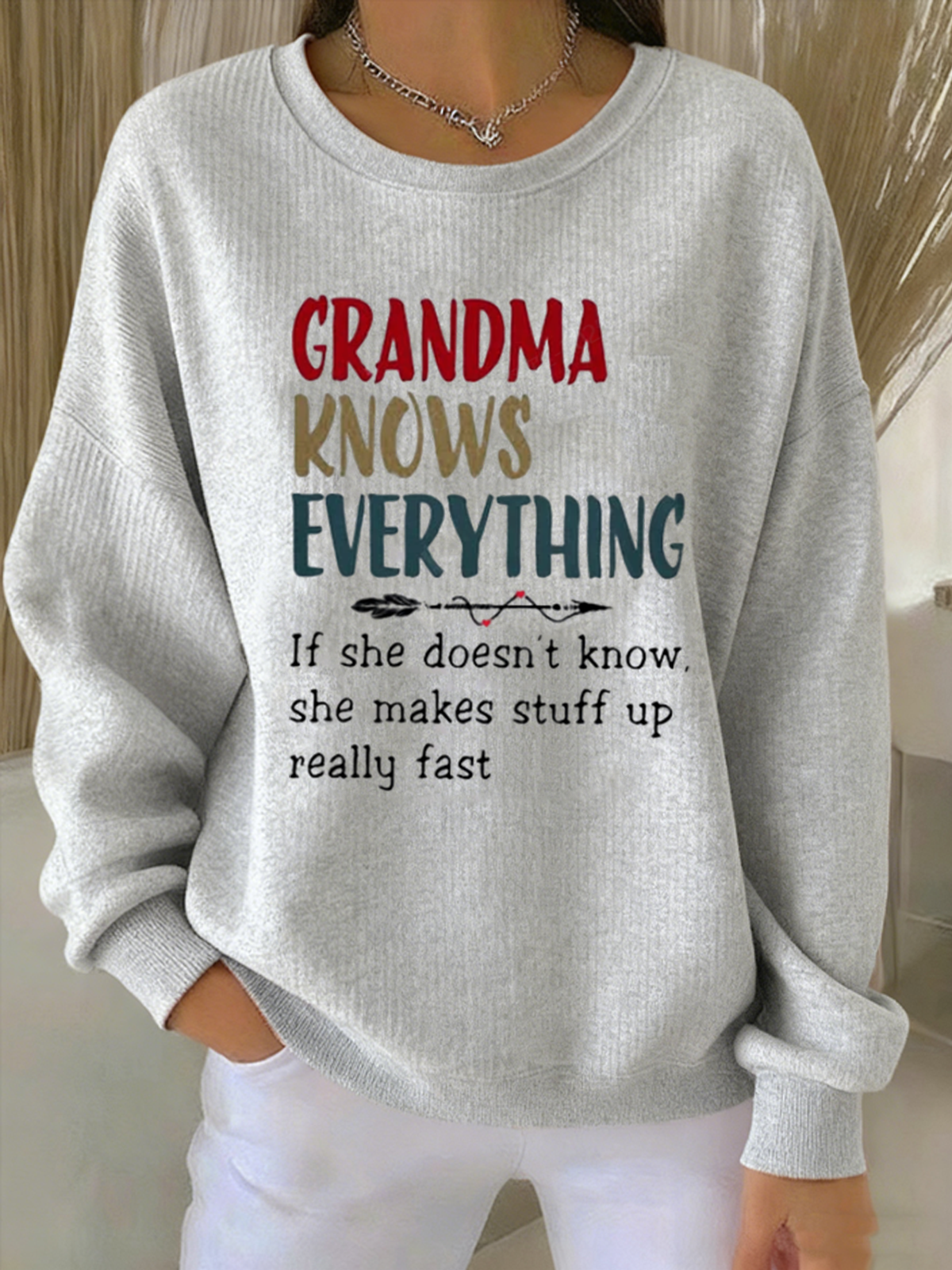 Crew Neck Loose Cotton-Blend Casual Sweatshirt