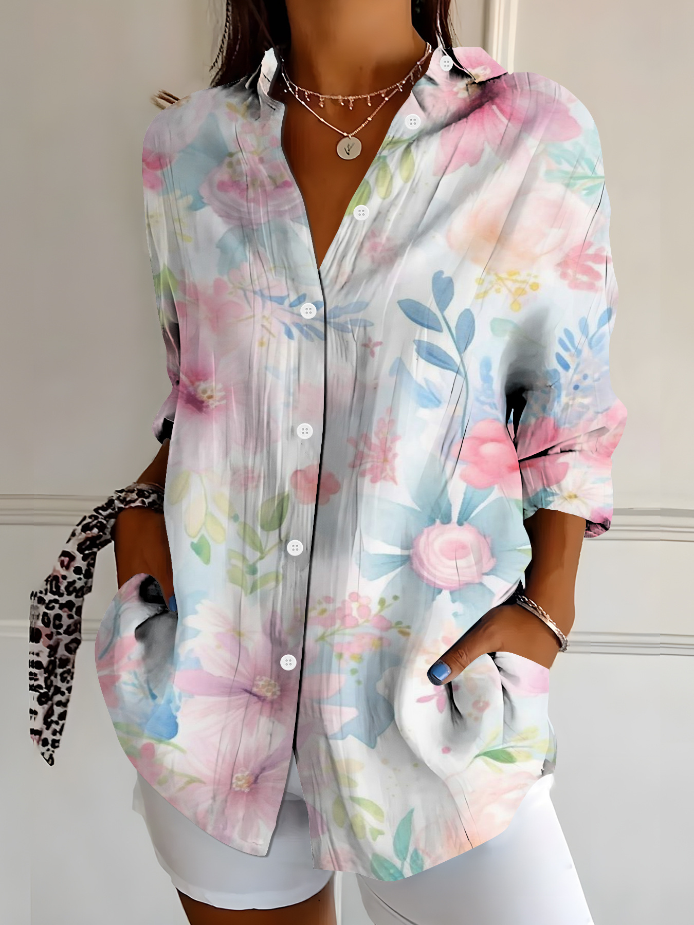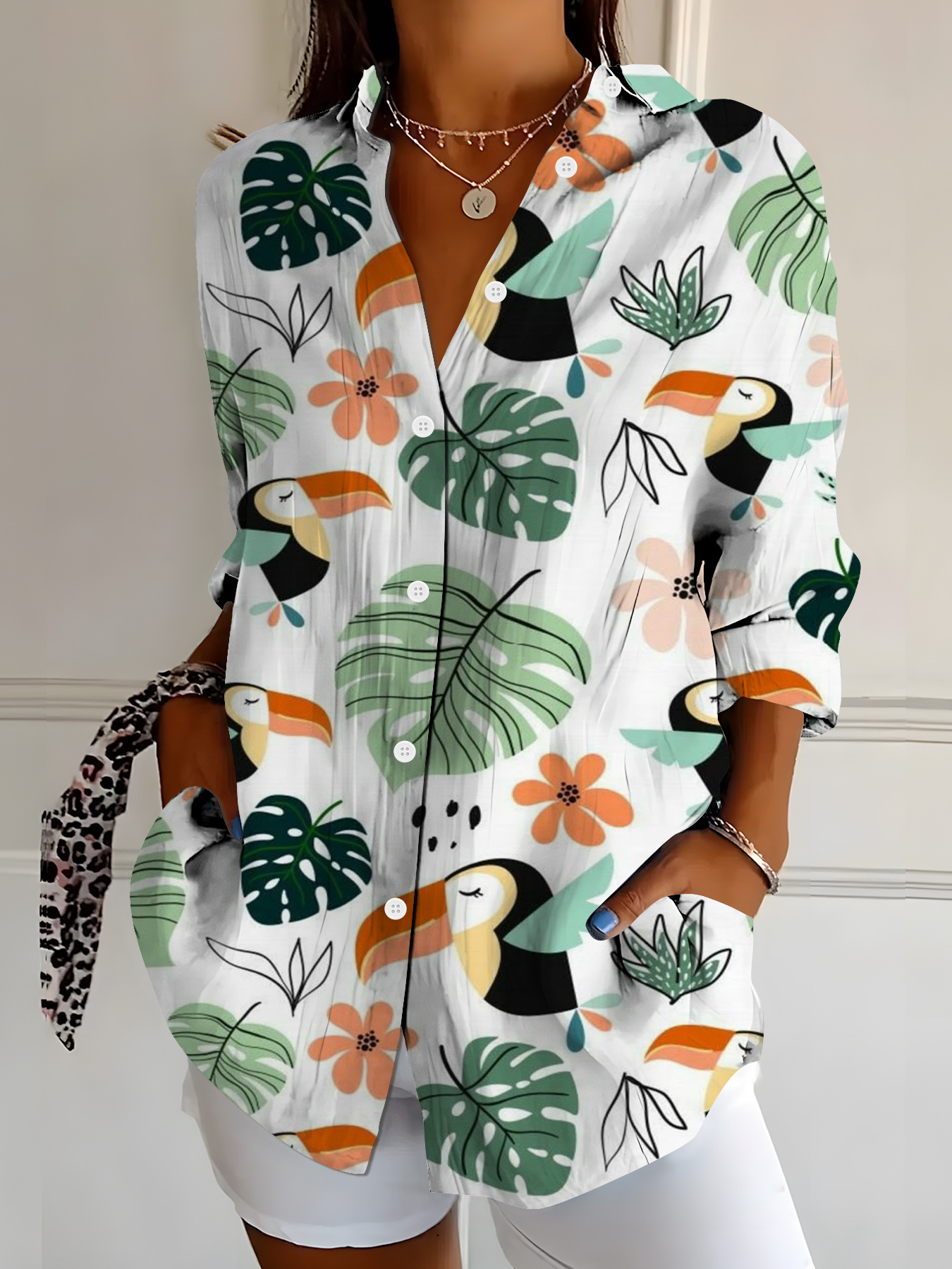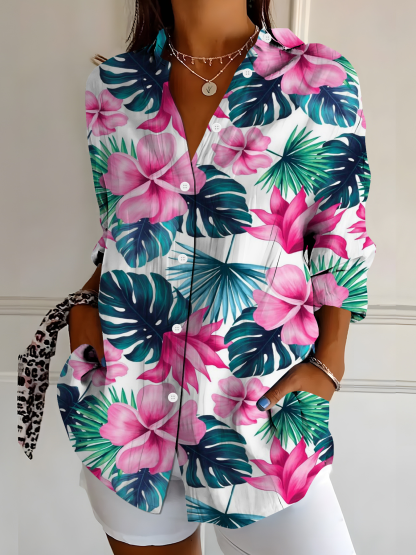 Floral Shirt Collar Vacation Shirt