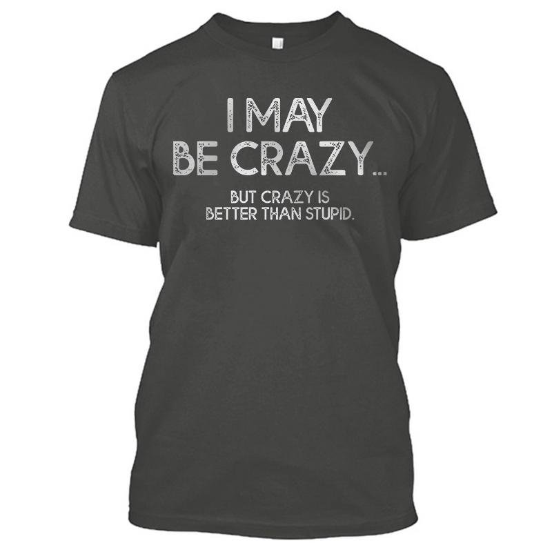 I May Be Crazy But Crazy Is Better Than Stupid Sarcasm Funny Short Sleeve Cotton T-shirt