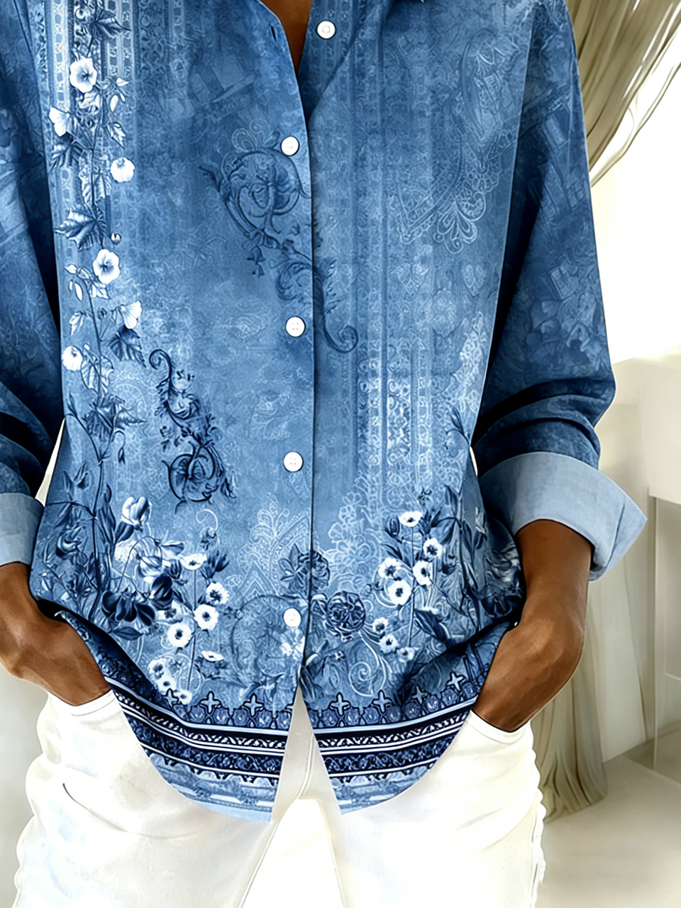 Loose Shirt Collar Gradient Pattern Simple Shirt
