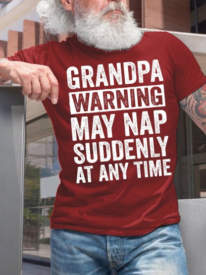 Men's Grandpa Warning May Nap Suddenly At Any Time Funny Graphic Printing Casual Text Letters Cotton T-Shirt