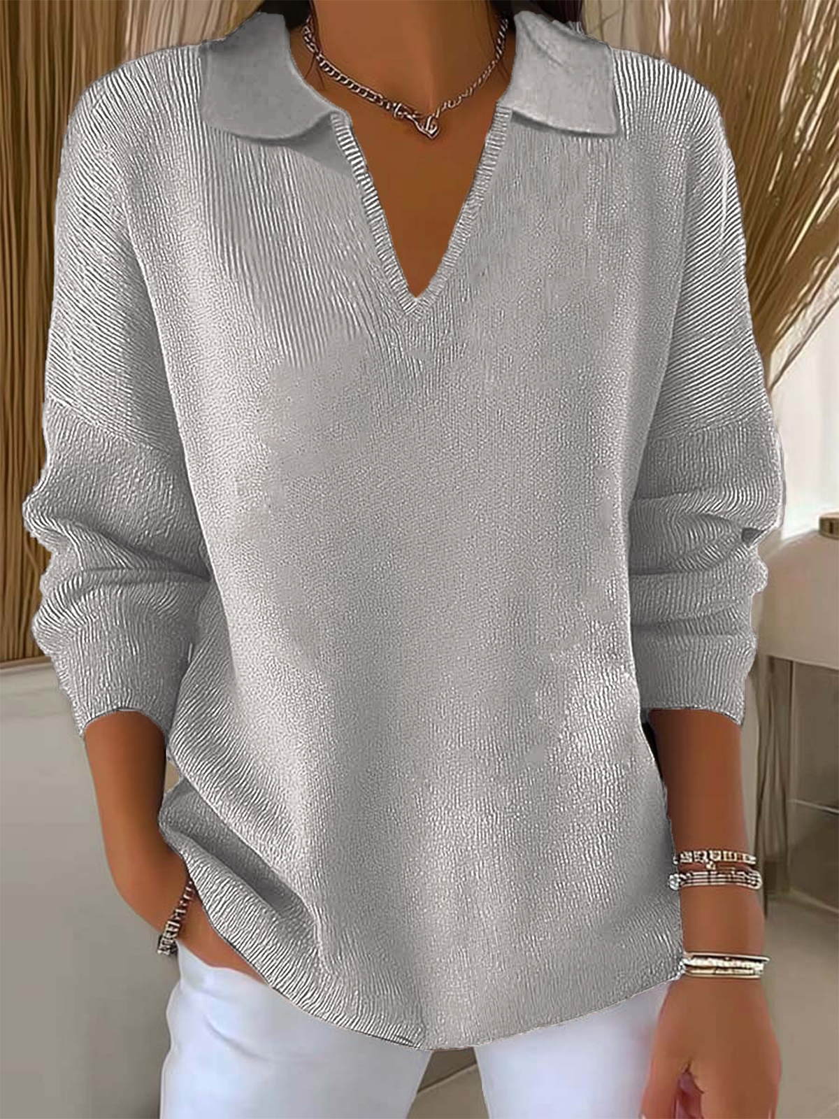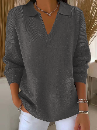 Plain Casual Loose V Neck Sweater