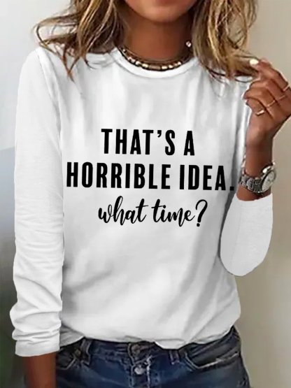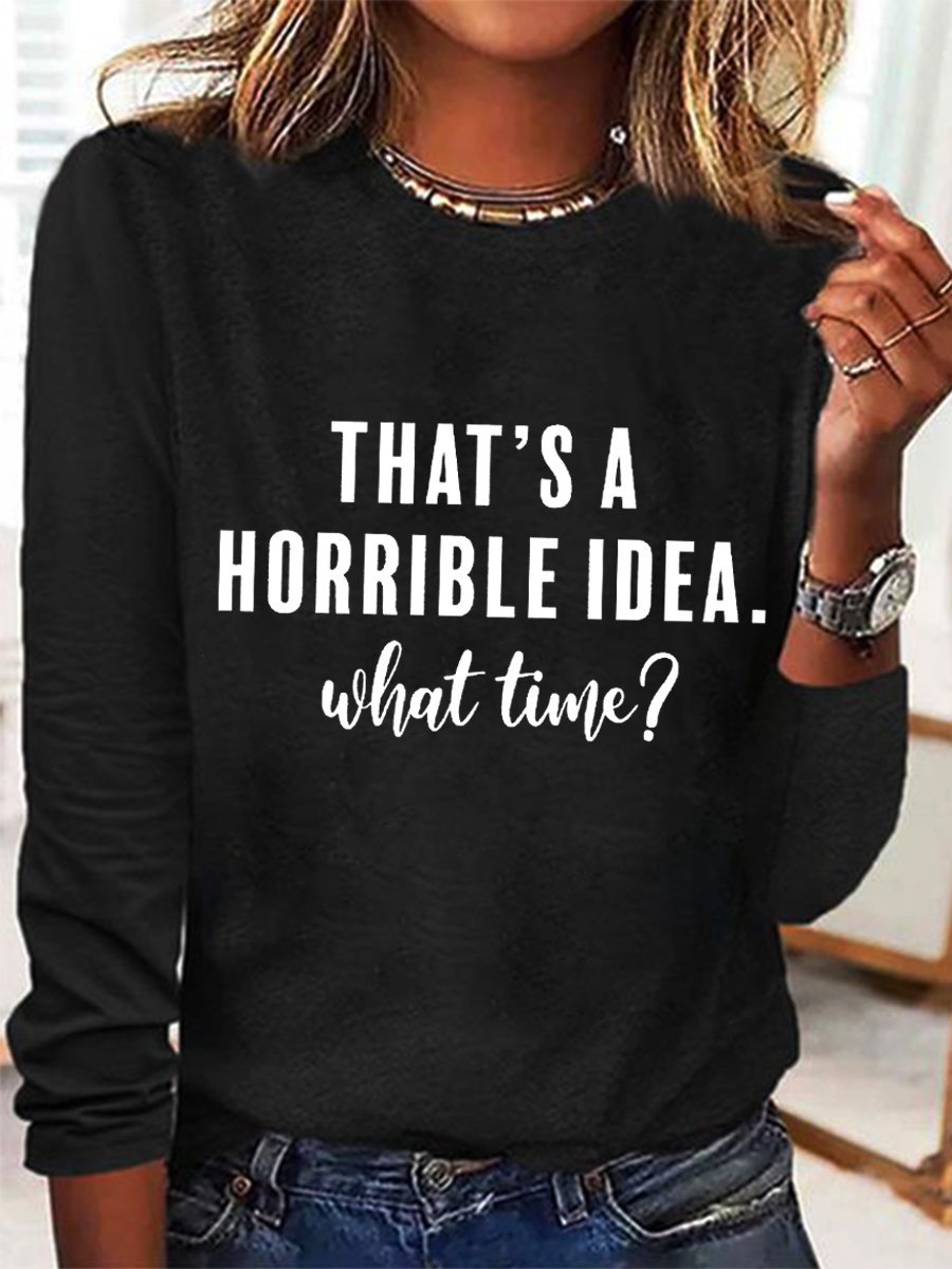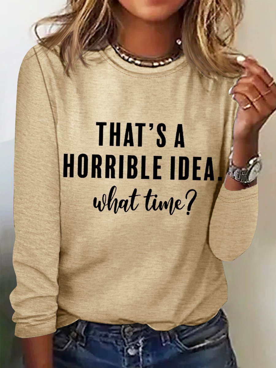 Women’s Funny Saying That’s A Horrible Idea, What Time? Regular Long Sleeve Top