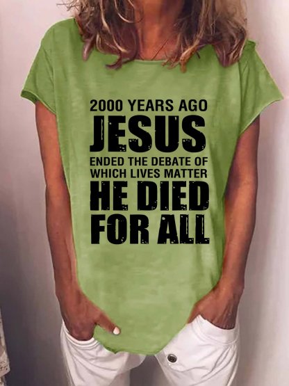 Women's 2000 Yrs Ago Jesus Ended The Debate of Which Lives Matter Text Letters Casual T-Shirt