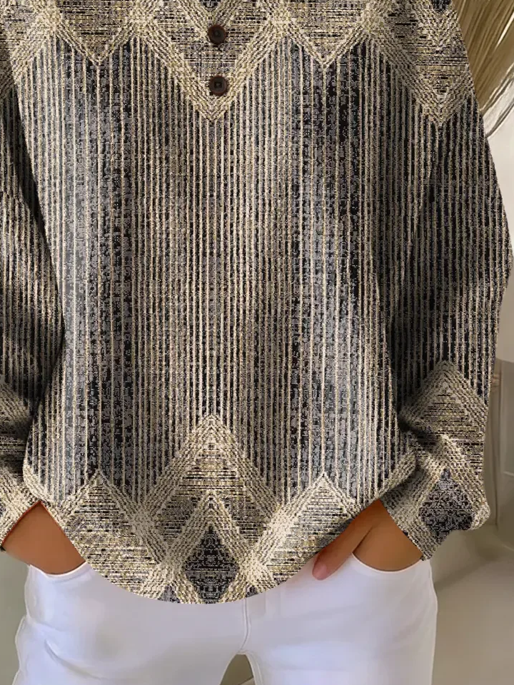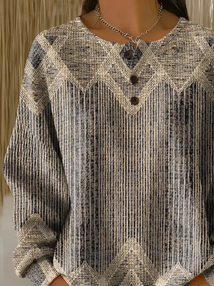 Women's Abstract Print Button-Up Casual Waffle Knit Sweatshirt