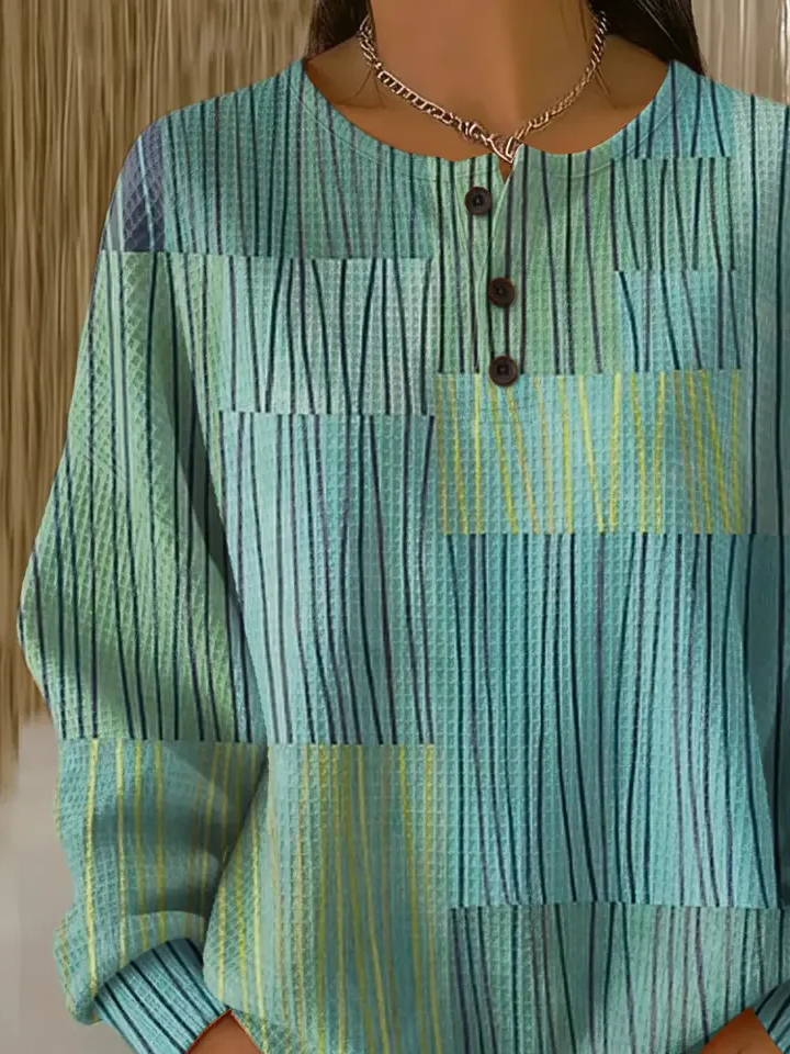 Women's Abstract Print Button-Up Casual Waffle Knit Sweatshirt