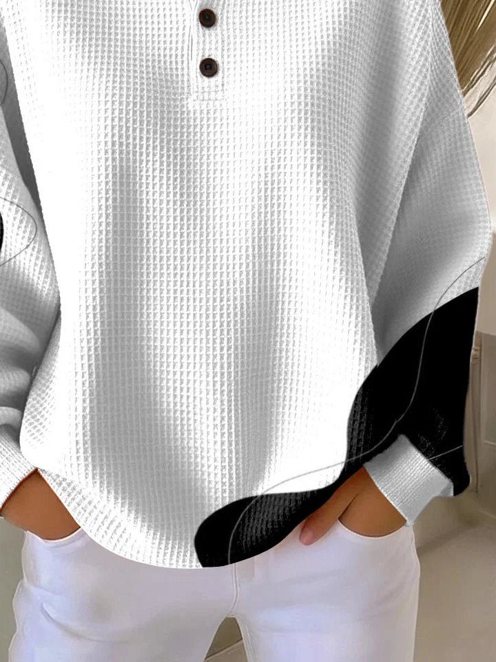 Women's Abstract Print Button-Up Casual Waffle Knit Sweatshirt