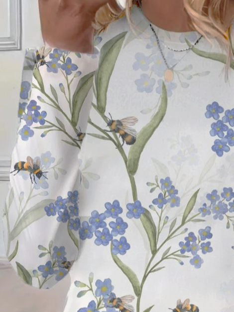 Women's Floral Spring Print Casual Round Neck Long Sleeve T-Shirt