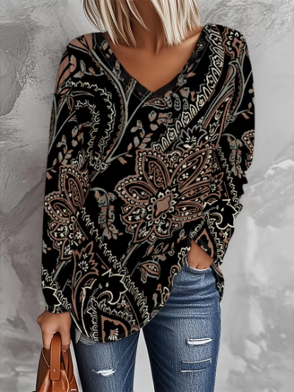 Women's Long Sleeve T-shirt Spring/Fall Black Floral Printing Jersey V Neck Daily Going Out Casual Top