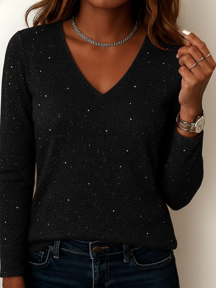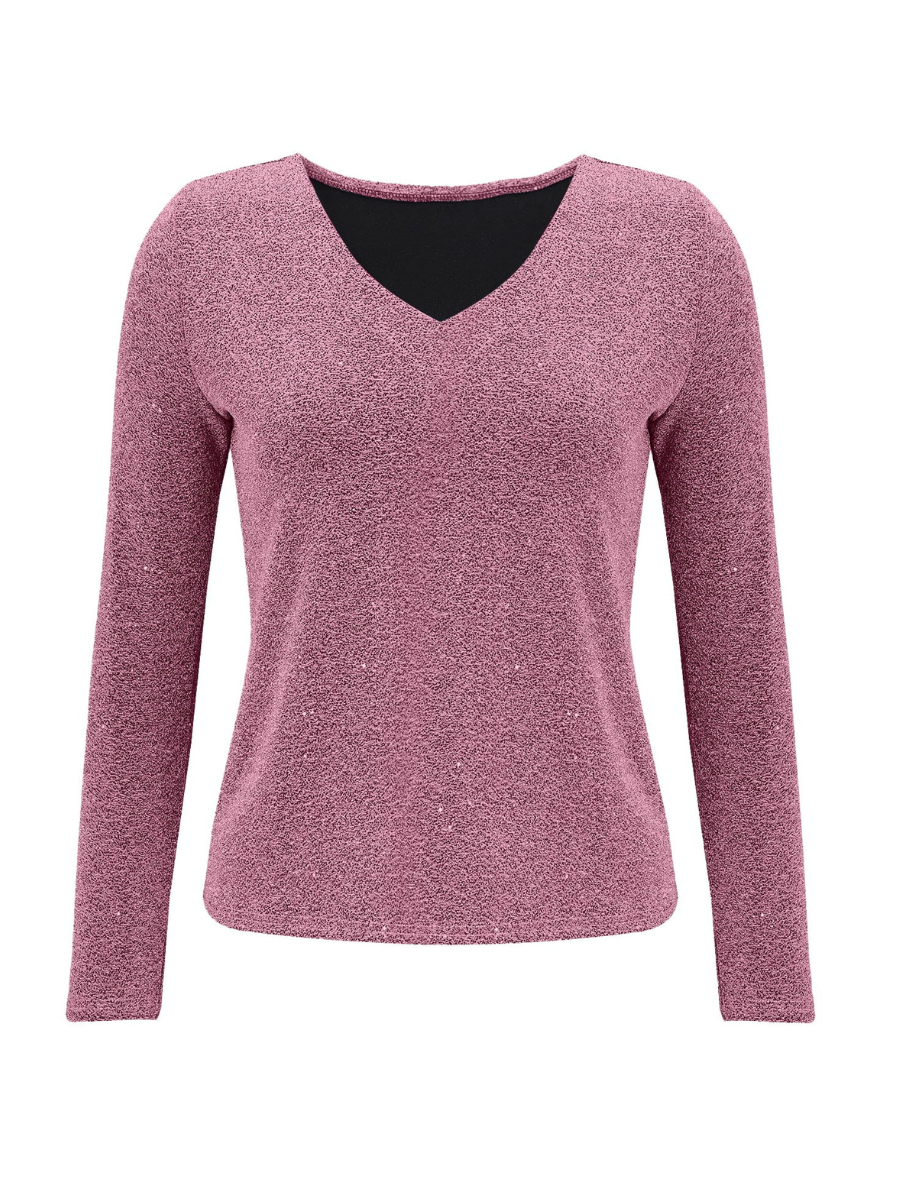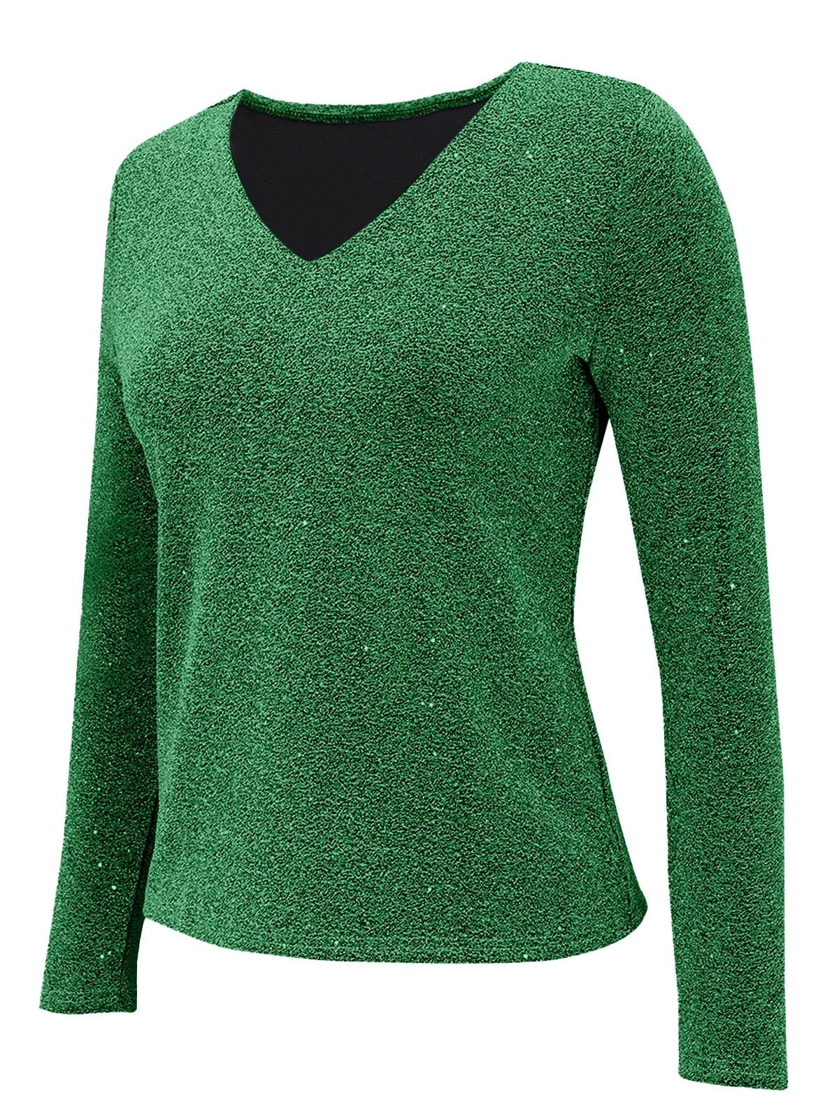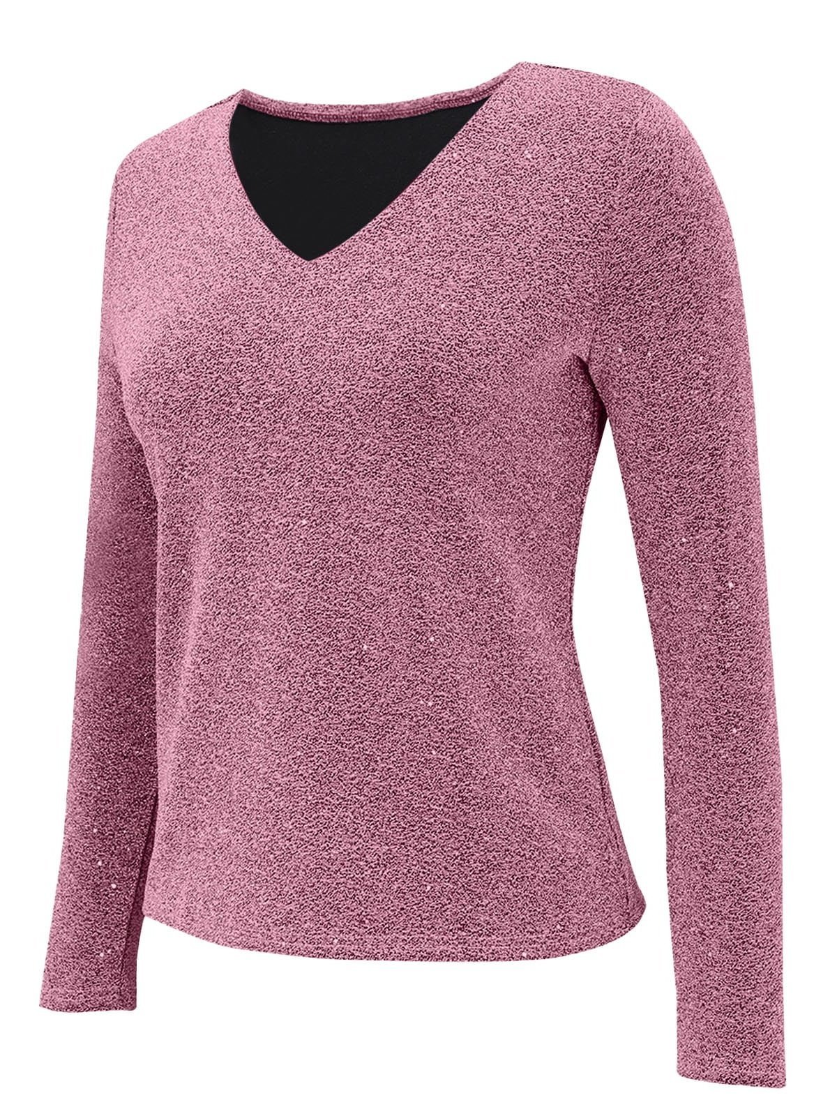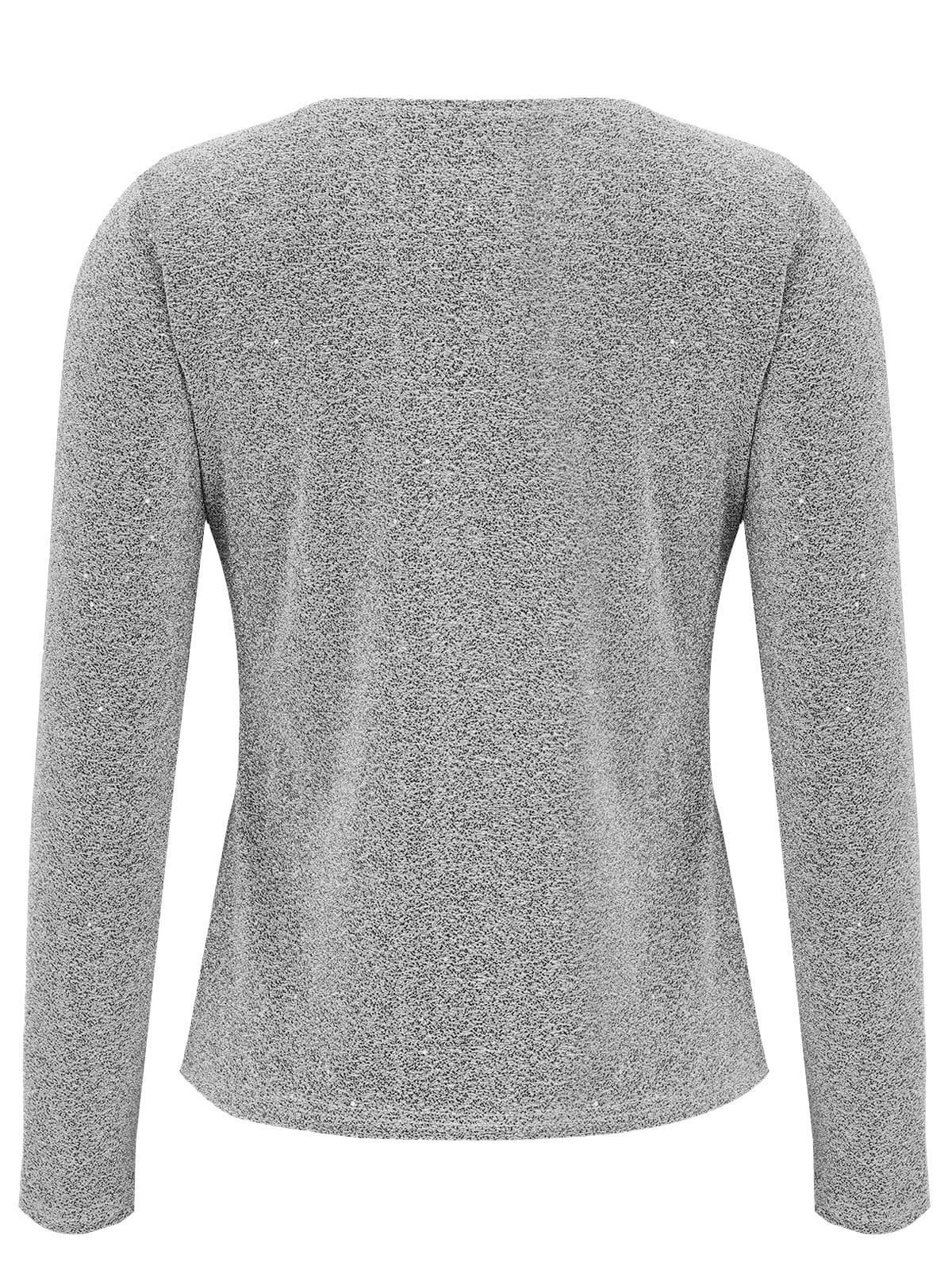 Women's Long Sleeve T-shirt Spring/Fall Silver Plain Split Joint Polyester Cotton V Neck Daily Going Out Casual Top