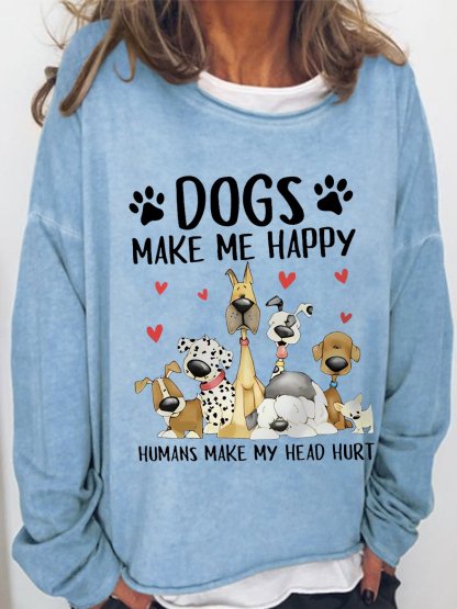Women's Funny Word Dog Make Me Happy Crew Neck Simple Sweatshirt