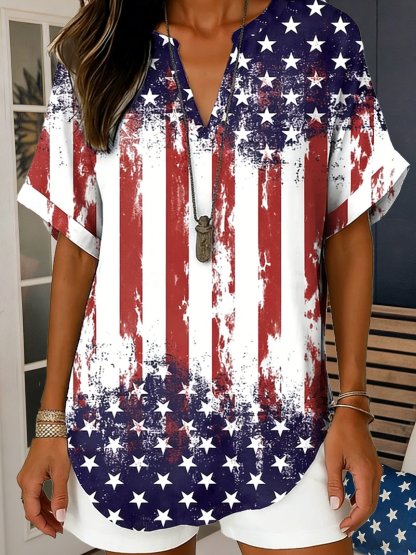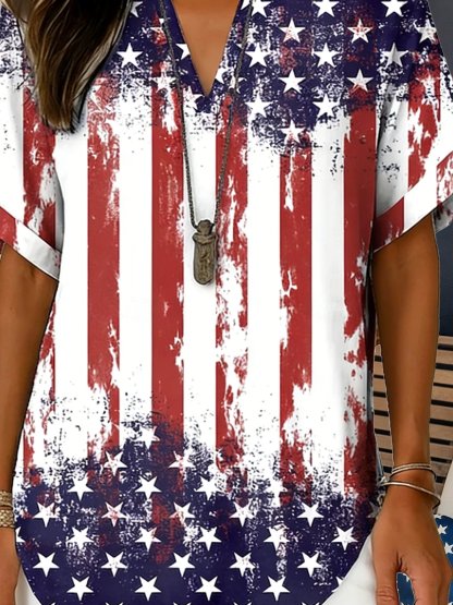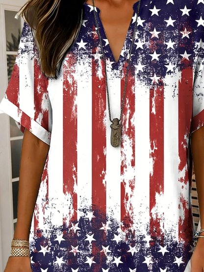 3D Printing America Flag V Neck Short Sleeve Casual Shirt