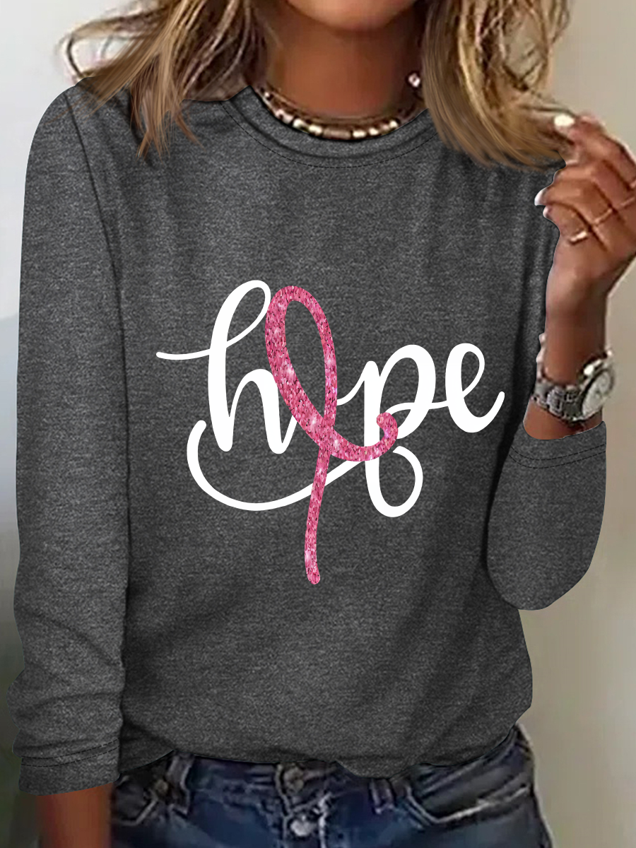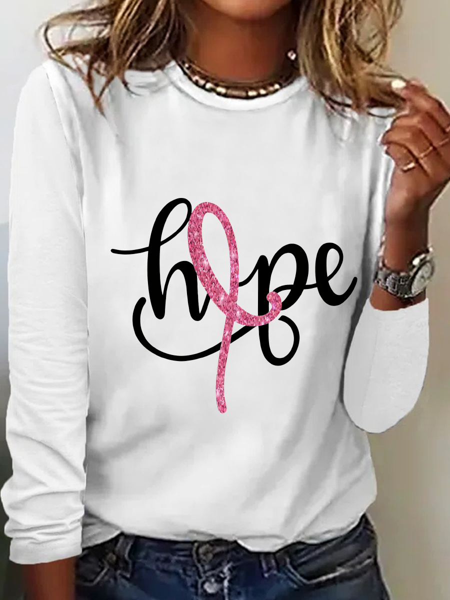 Breast Cancer Hope Ribbon Casual Long Sleeve Shirt