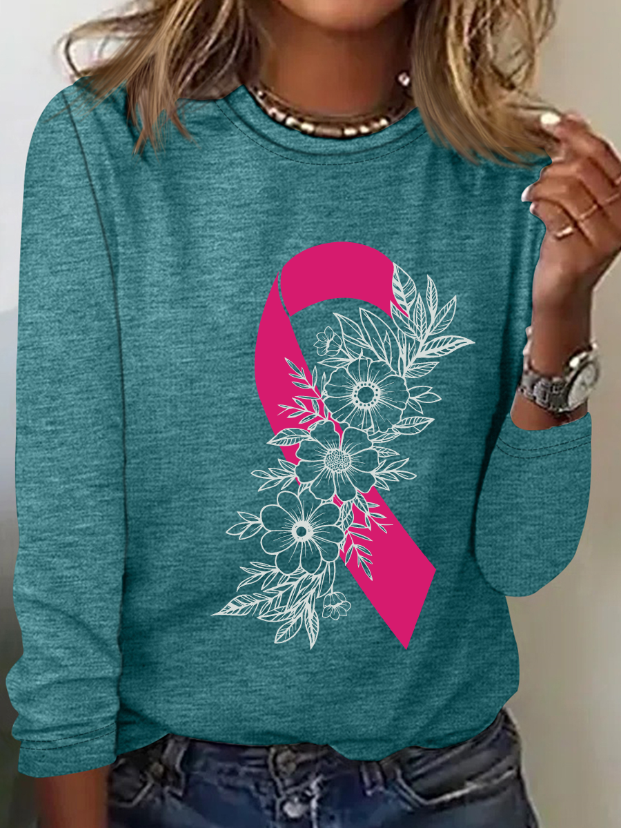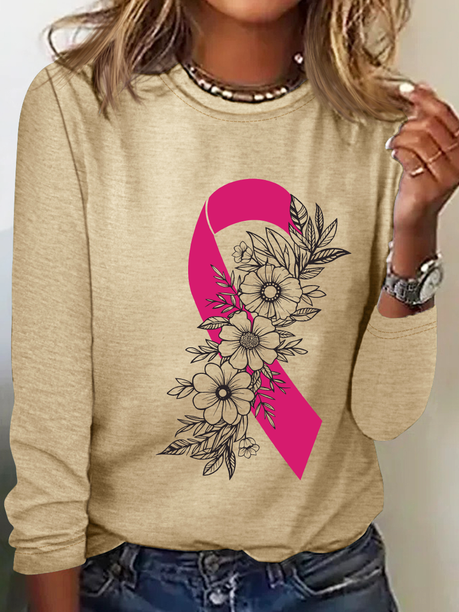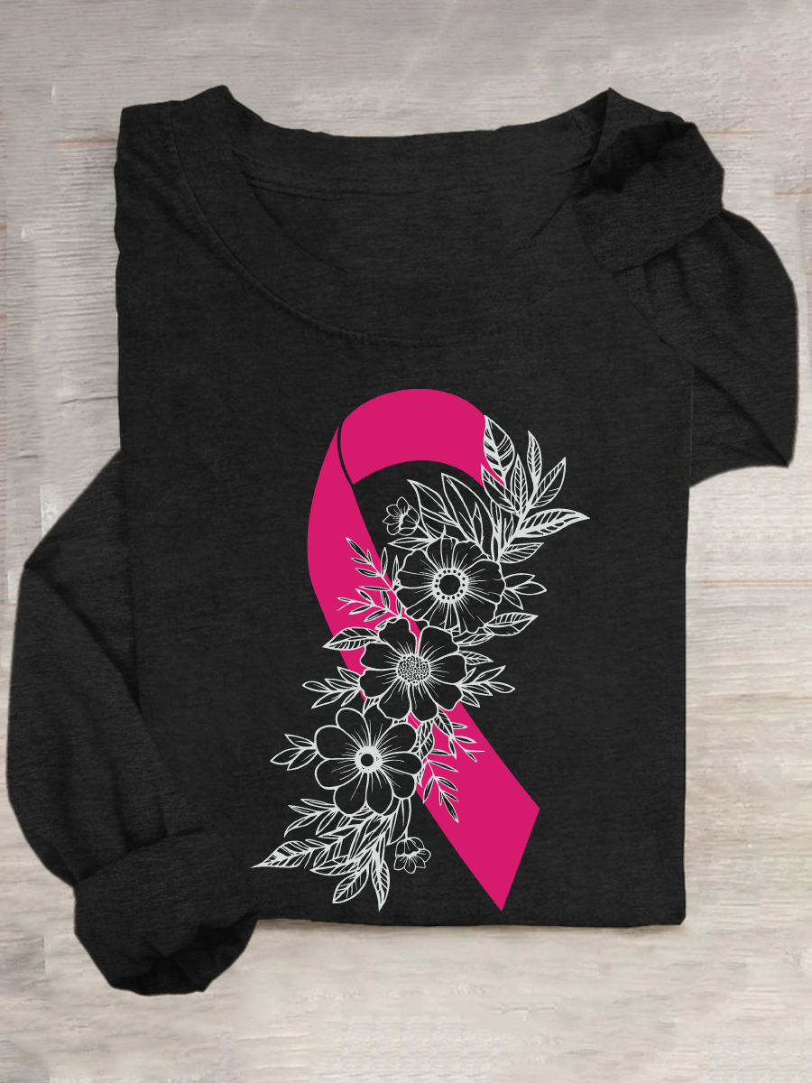 Breast Cancer Pink Ribbon Cancer Casual Long Sleeve Shirt