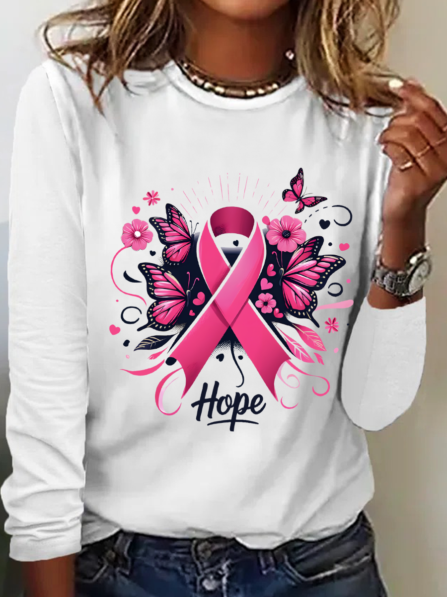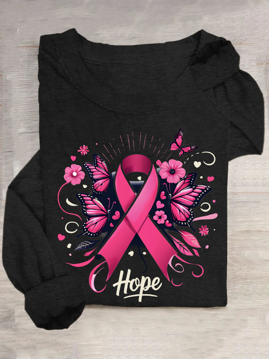 Cancer Hope Png Pink Butterfly Breast Cancer Casual Long Sleeve Shirt