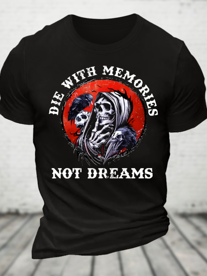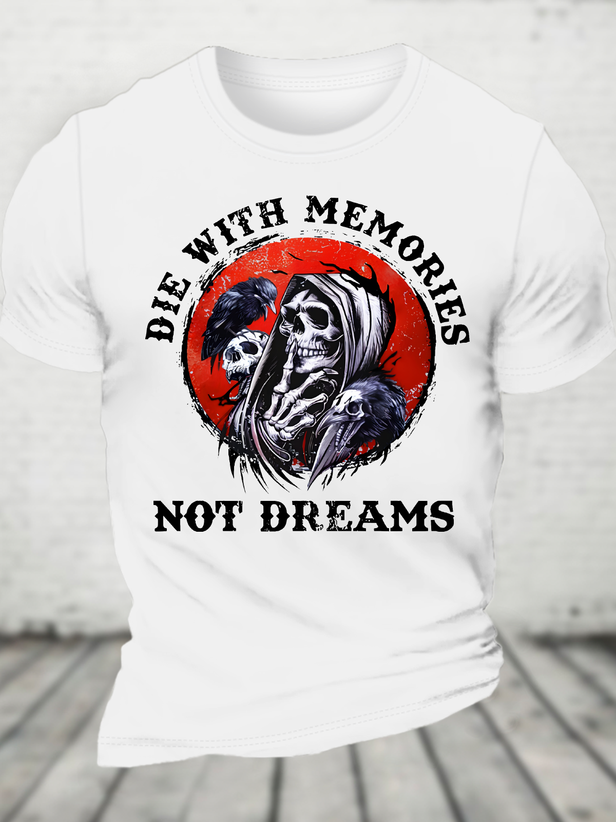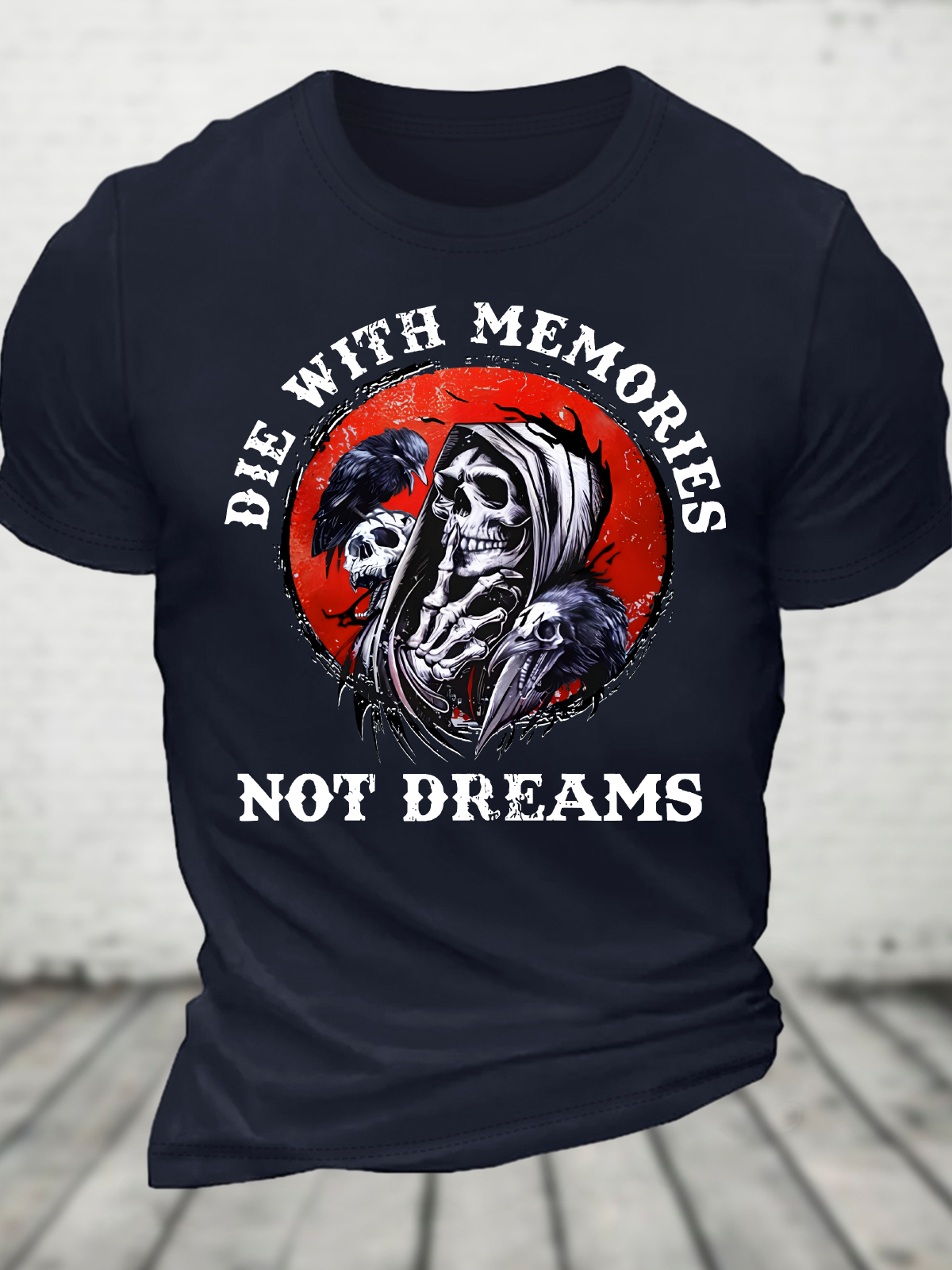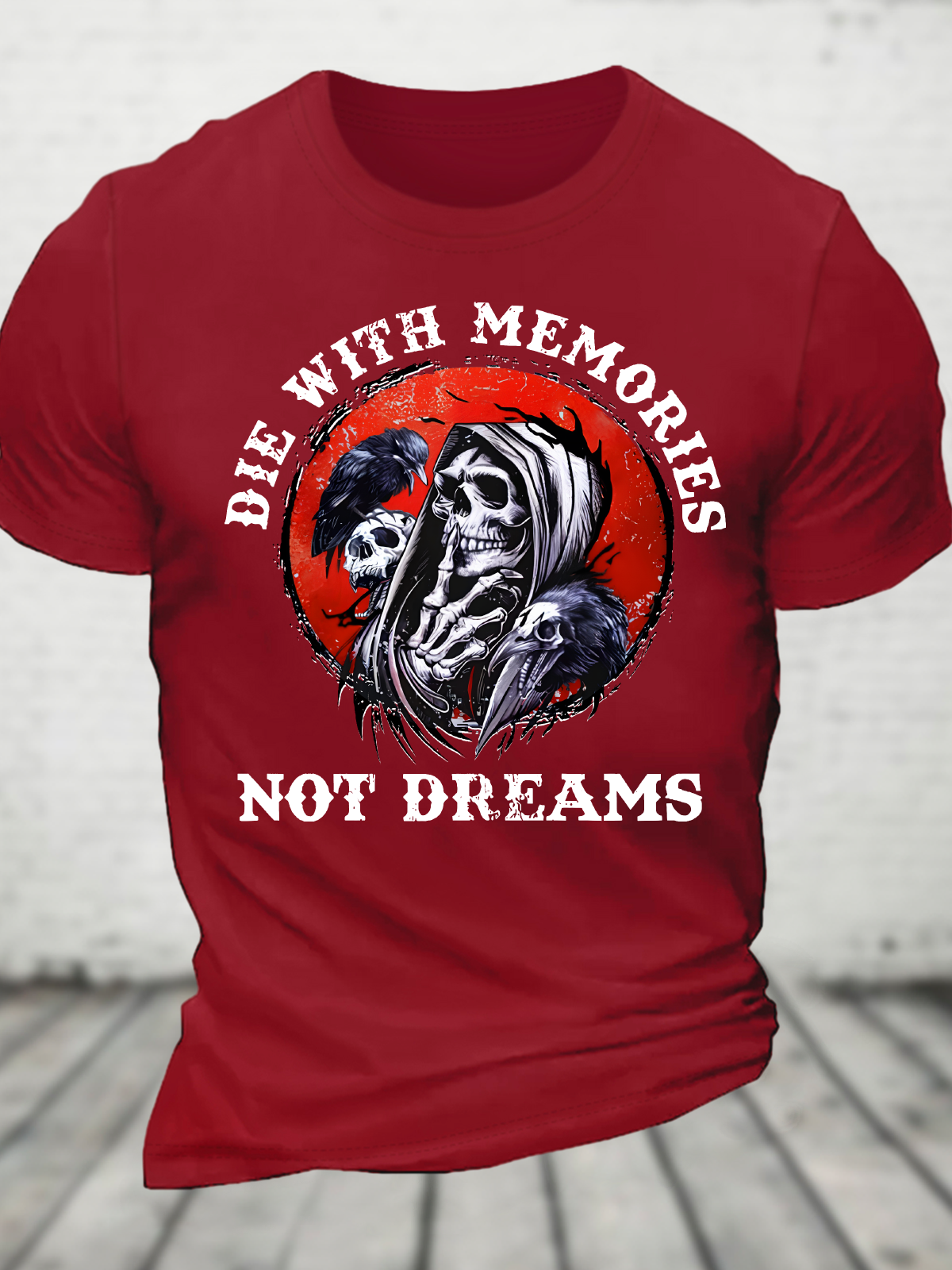Die With Memories Not Dreams Skeleton Print Men's Cotton T-Shirt