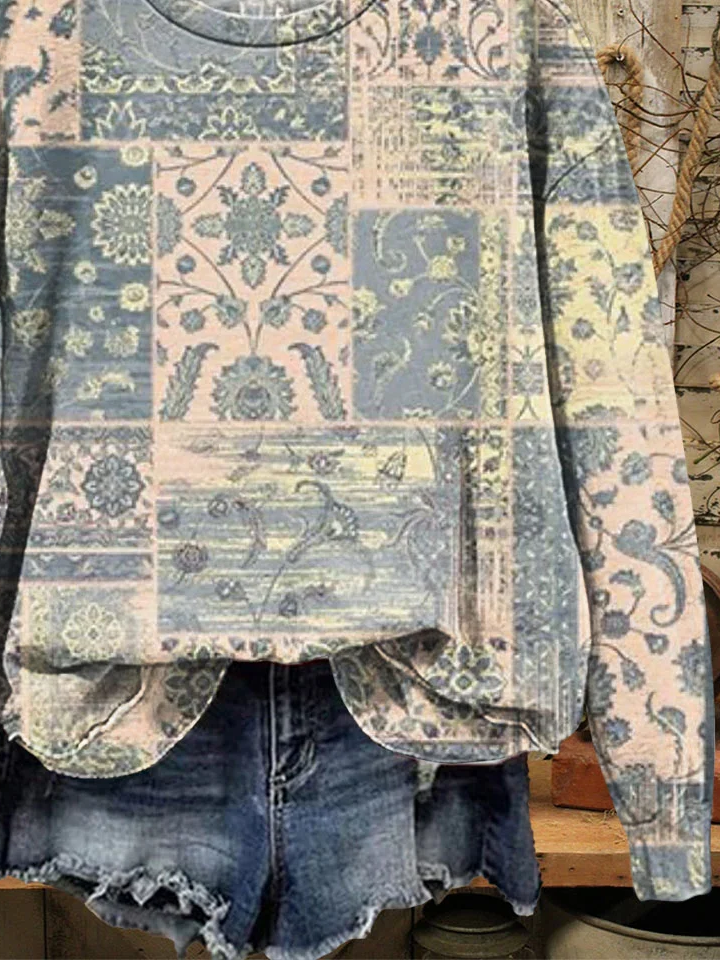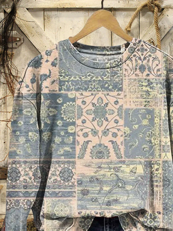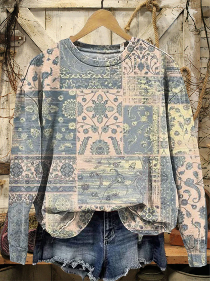 Loose Crew Neck Floral Casual Sweatshirt