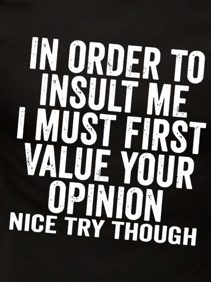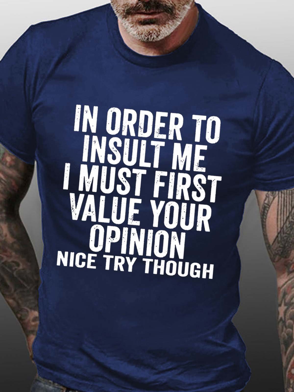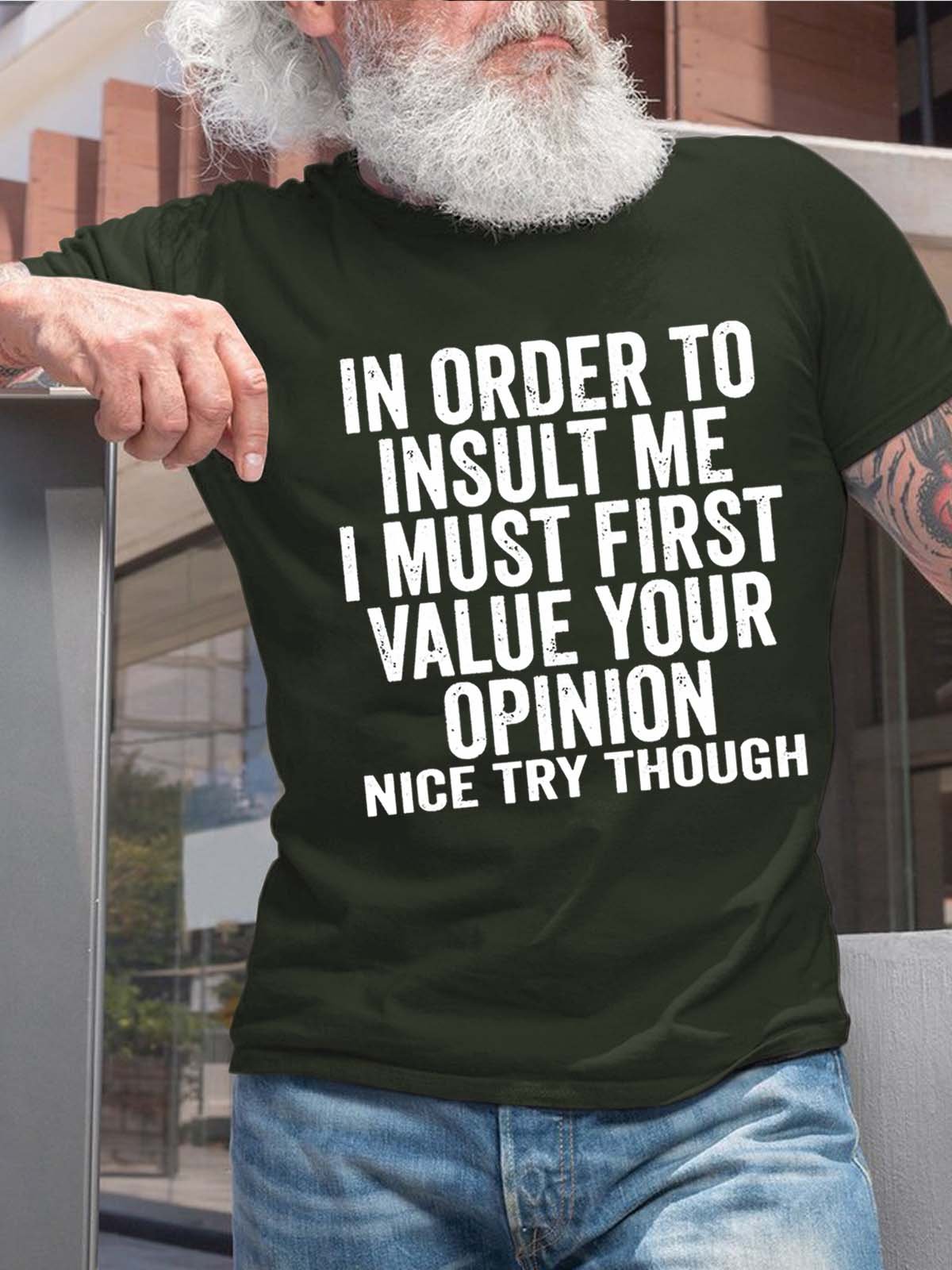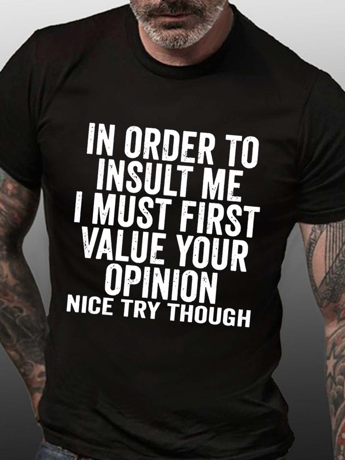 Men First Value Your Opinion Nice Try Letters Cotton Fit Casual T-shirt