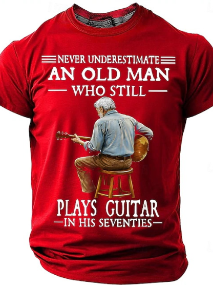 Men's 'NEVER UNDERESTIMATE AN OLD MAN WHO STILL PLAYS GUITAR IN HIS SEVENTIES' Short Sleeve T-shirt