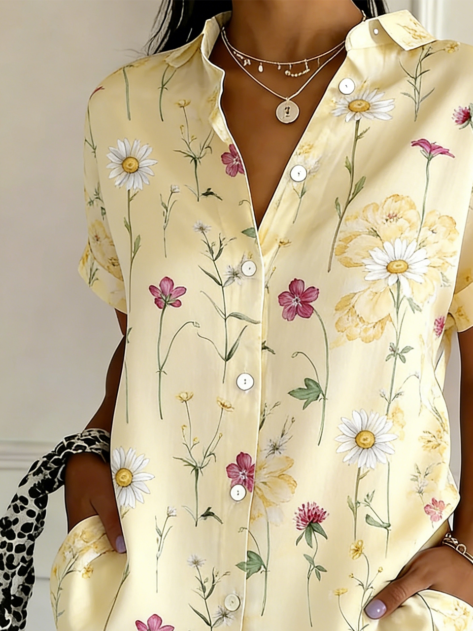 Shawl Collar Cotton And Linen Regular Fit Elegant Shirt